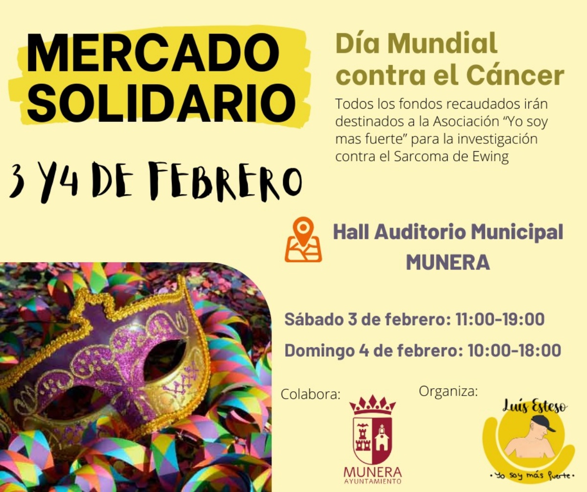 Para ayudar a los vecinos más rezagados a decantarse por una opción el hall del Auditorio Municipal de Munera se llenará con centenares de disfraces. Payasos, brujas e incluso las Meninas están presentes en un mercadillo de disfraces solidario organizado por la Asociación ‘Yo soy más fuerte’, coincidiendo además la celebración de esta cita con la fecha en la que se conmemora el Día del Cáncer (4 de febrero).