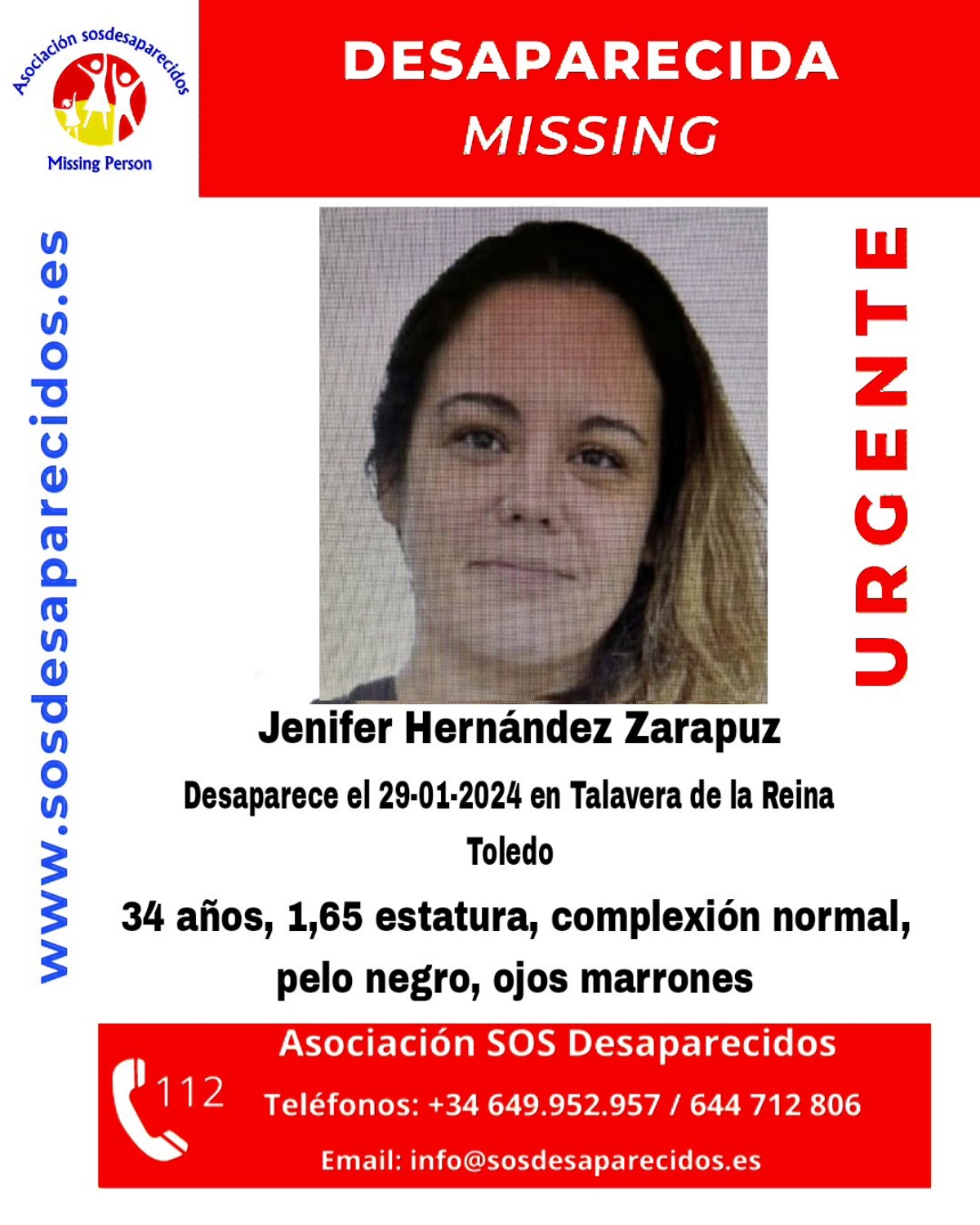 Desde la Asociación SOSDesaparecidos denunciaban la desaparición de Jenifer Hernández en Castilla-La Mancha, indicando que esta mujer de 34 años lleva en paradero desconocido desde el pasado lunes.