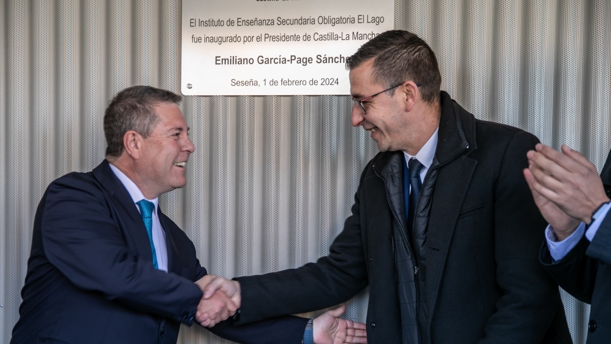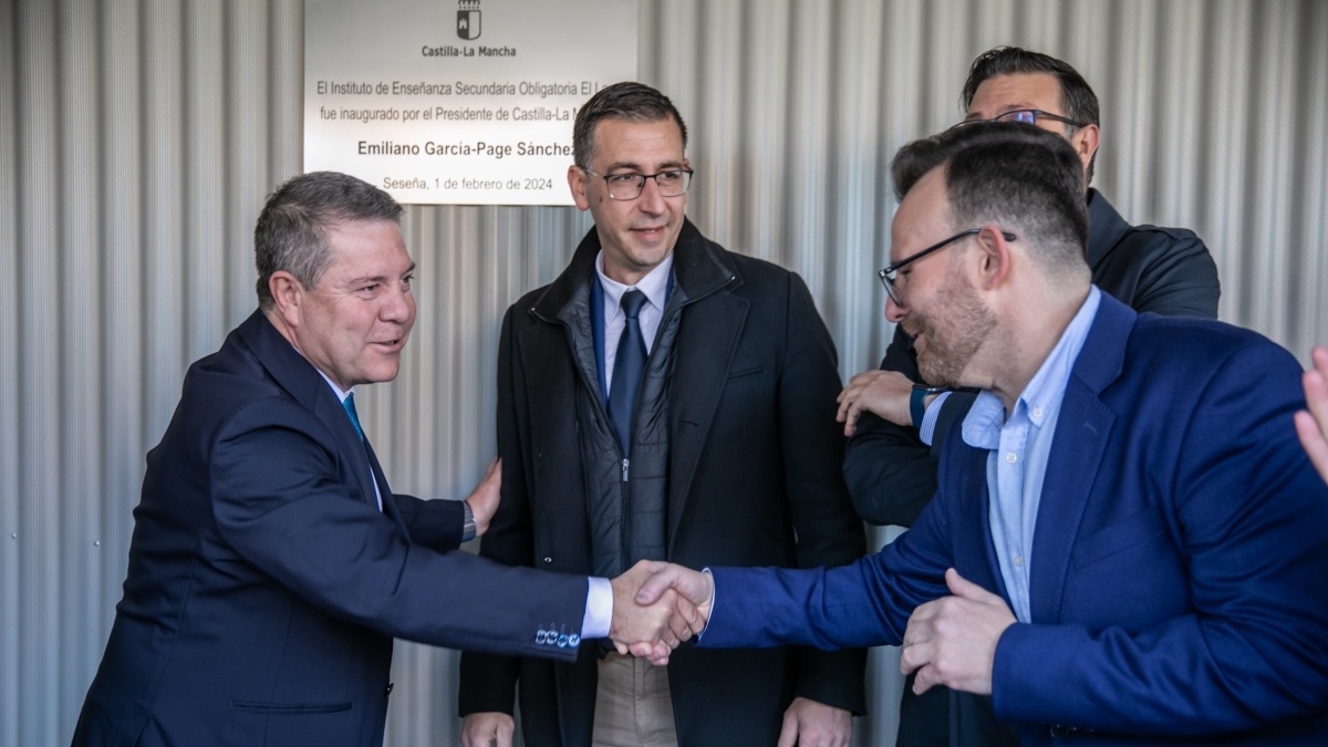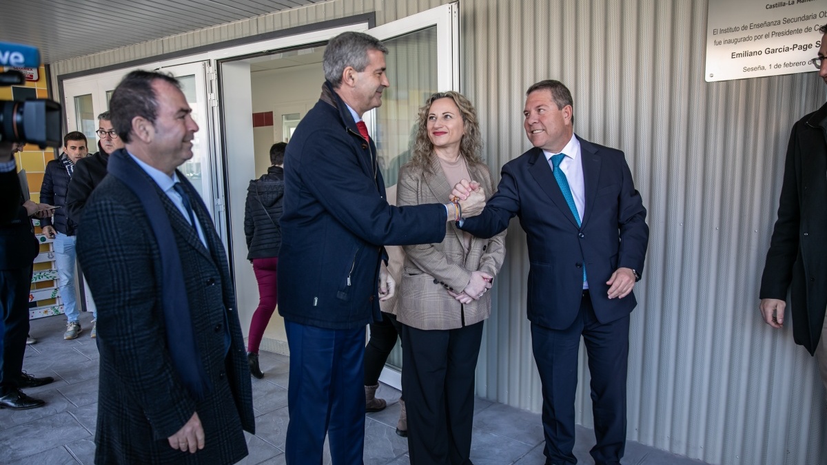 El presidente regional, Emiliano García-Page, ha inaugurado hoy el IESO ‘El Lago’ en la localidad de Seseña junto al consejero de Educación, Cultura y Deportes, Amador Pastor; la consejera Portavoz, Esther Padilla; el alcalde de la localidad, Jaime de Hita; el delegado de la Junta en Toledo, Álvaro Gutierrez; el delegado provincial del área, José Gutierrez; y el director del centro educativo, Raúl Pedraza, entre otras autoridades.