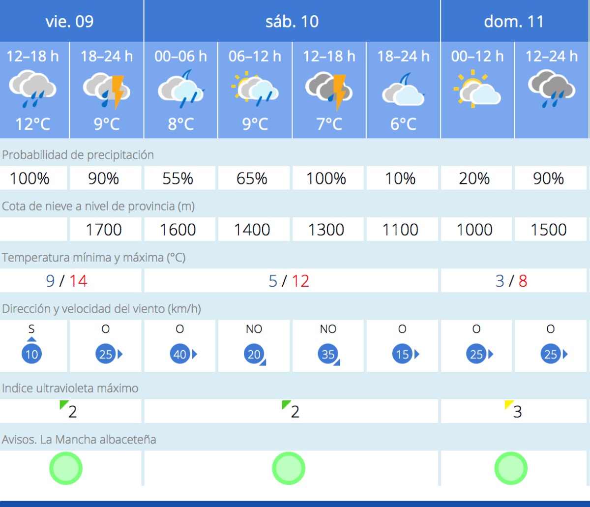 En lo que a Albacete se refiere, es prácticamente seguro que Karlotta llegue acompañada de lluvias y tormentas, tal y como muestra la siguiente previsión de la AEMET:
