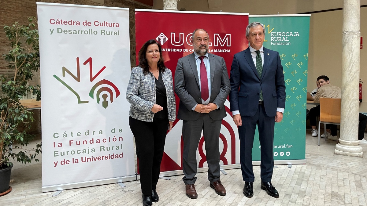 Al acto de entrega, celebrado en la iglesia-paraninfo de San Pedro Mártir, en Toledo, asistieron también la directora de la Cátedra Fundación Eurocaja Rural-UCLM Cultura y Desarrollo Rural, Rebeca Rubio, y la gerente de la Fundación Eurocaja Rural, Susana Cortés.