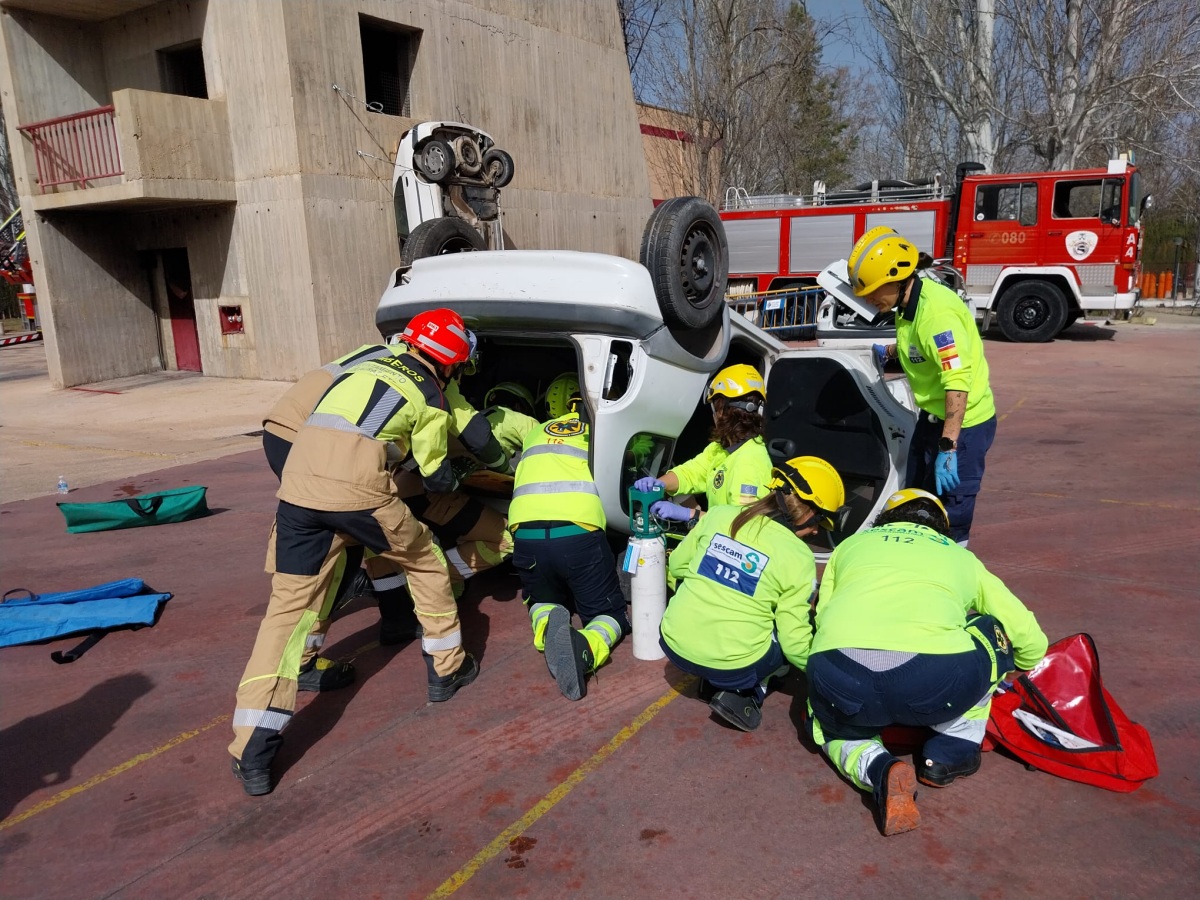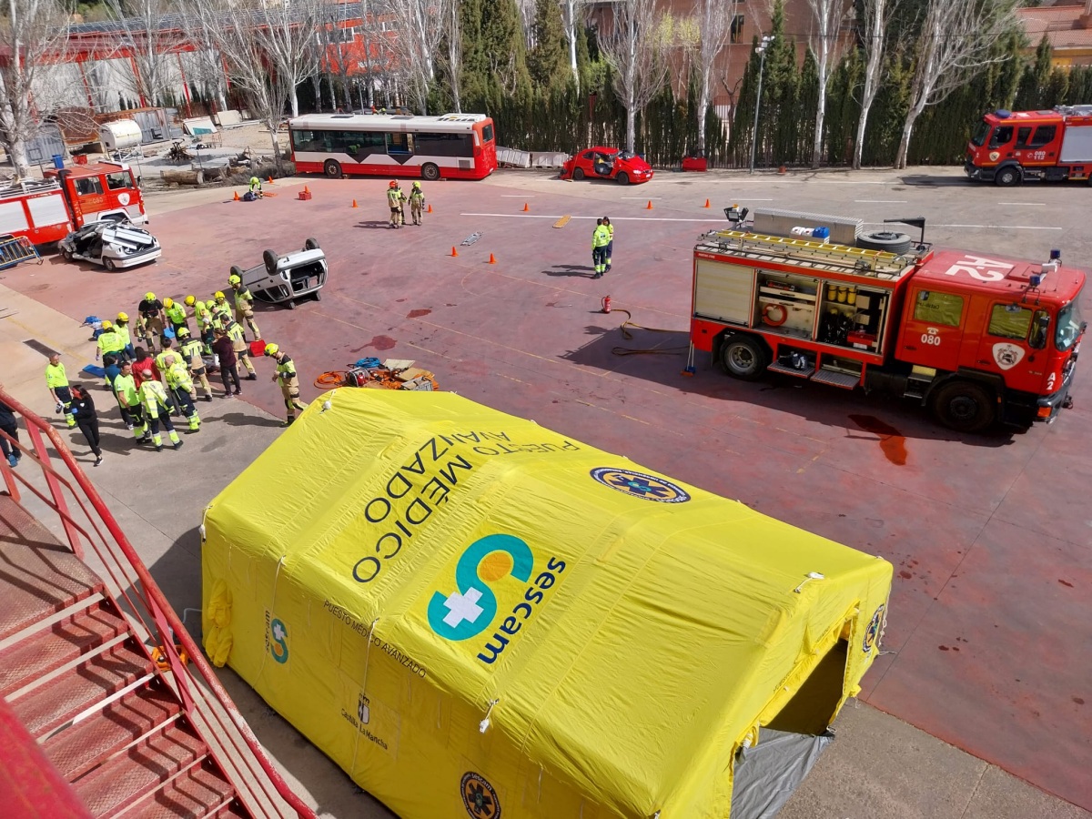 En la mañana de este jueves, 14 de marzo, el Parque de Bomberos de Albacete se ha convertido en el escenario de una sesión de prácticas en la que además de los profesionales de la lucha contra el fuego también han participado profesionales sanitarios del SESCAM.