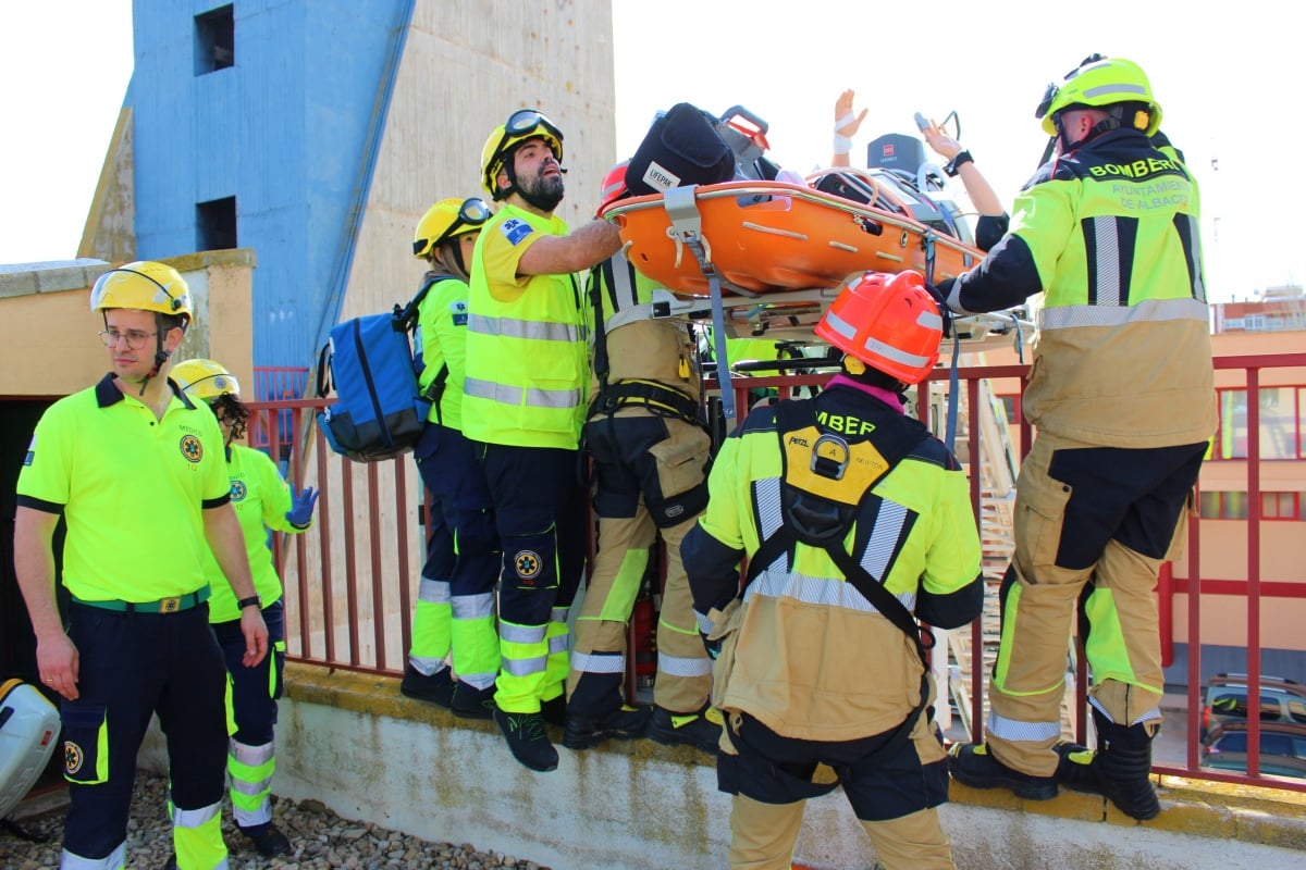 La Gerencia de Urgencias, Emergencias y Transporte Sanitario (GUETS), dependiente del Servicio de Salud de Castilla-La Mancha, continúa la labor de formación y actualización de conocimientos para sus profesionales sanitarios en Albacete. En el día de ayer, jueves 14 de marzo, practicaron de manera conjunta con los Bomberos del Ayuntamiento de Albacete.