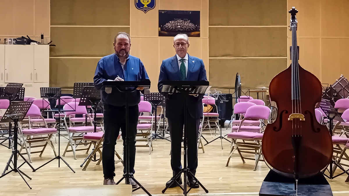 El presidente de Globalcaja, Mariano León, ha conocido la importante función cultural y educativa que cumple la Asociación Musical Moteña, banda que, bajo la batuta de José Enrique Martínez Esteve, está integrada por más de un centenar de músicos.