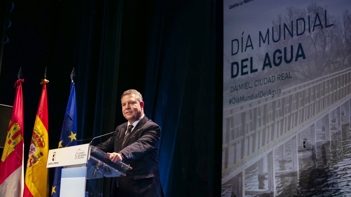 El presidente autonómico ha hecho estas declaraciones en el acto institucional del Día Mundial del Agua que, bajo el lema ´Cada gota cuenta, preserva la vida´, ha servido para reconocer la aportación de personas, entidades y empresas de Castilla-La Mancha a la promoción y protección de este imprescindible recurso natural. En este marco, Emiliano García-Page ha insistido en que “más allá de considerar el agua como un recurso material, como una materia prima, es un elemento esencial, física y espiritualmente, de la condición humana”.