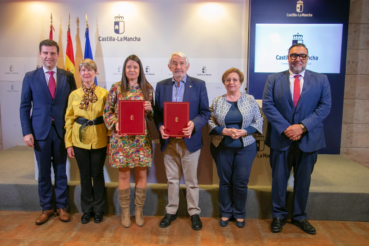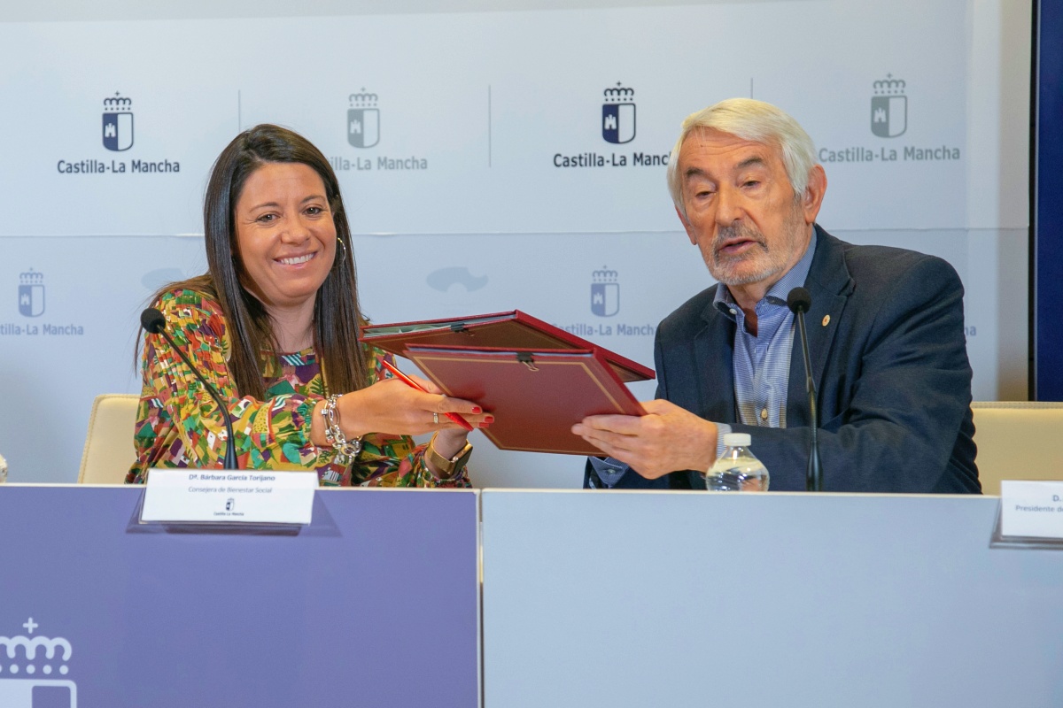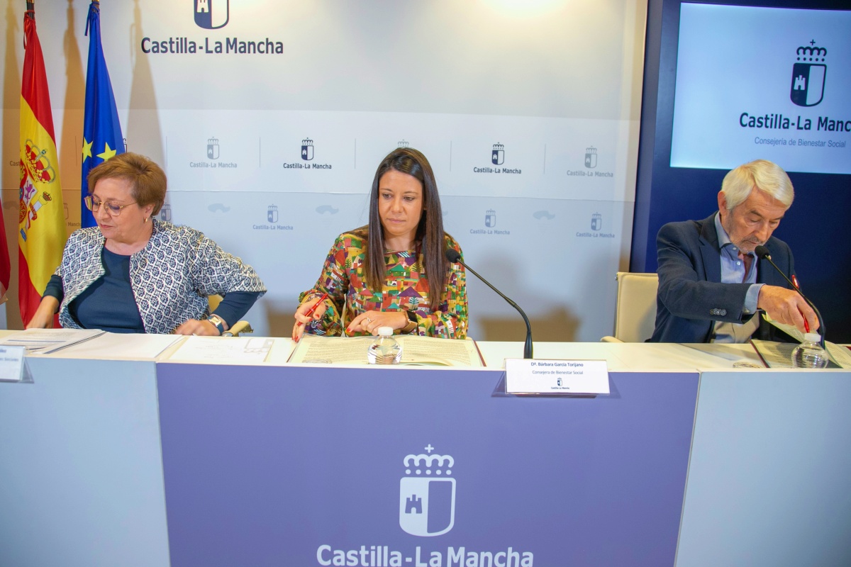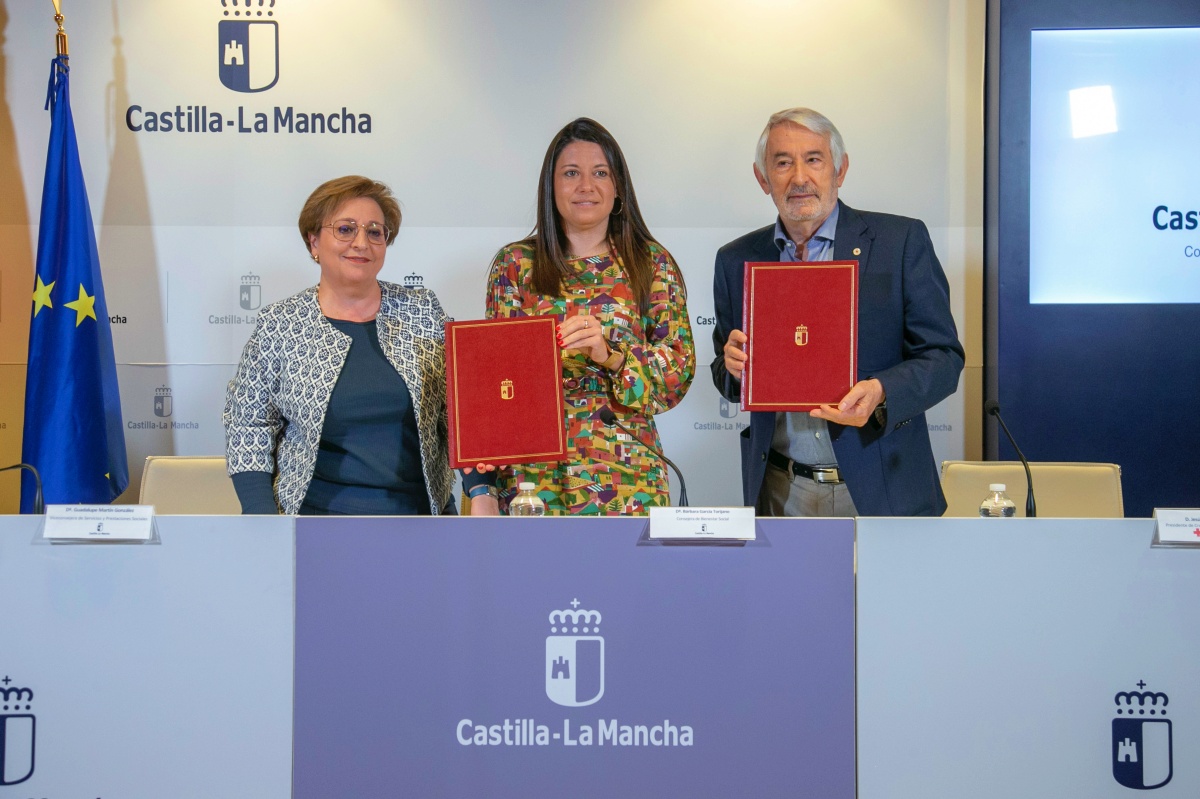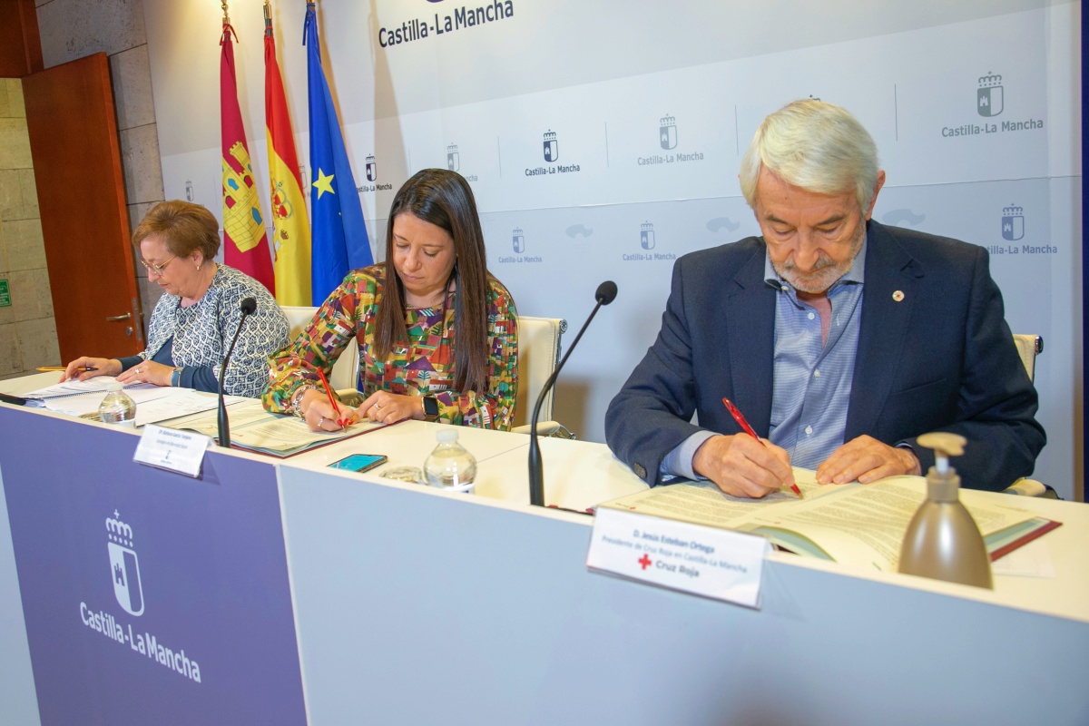 La consejera de Bienestar Social, Bárbara García Torijano, ha renovado la firma de este convenio junto al presidente de Cruz Roja Castilla-La Mancha, Jesús Esteban, en un acto en el que han estado acompañado por la viceconsejera de Servicios y Prestaciones Sociales, Guadalupe Martín, así como por el delegado de Bienestar Social en la provincia de Toledo, Maximiliano Muñoz.