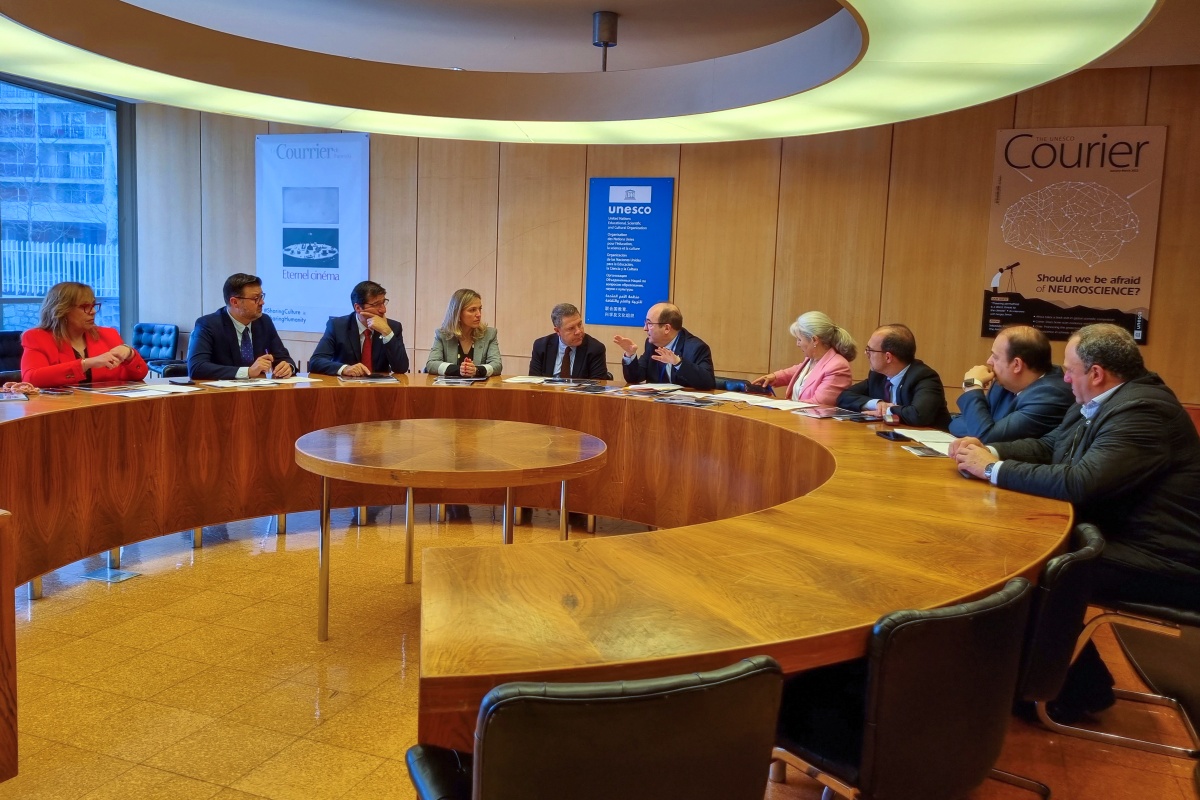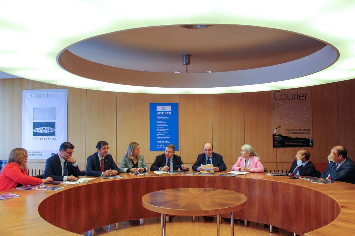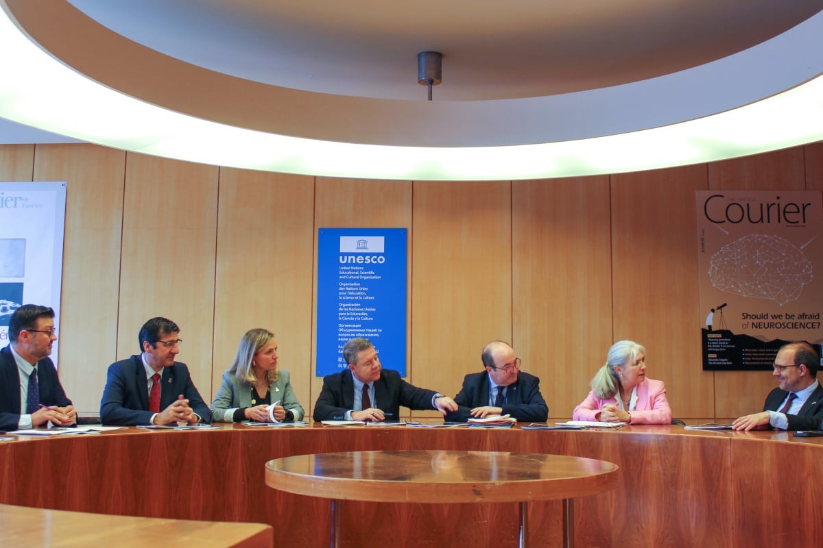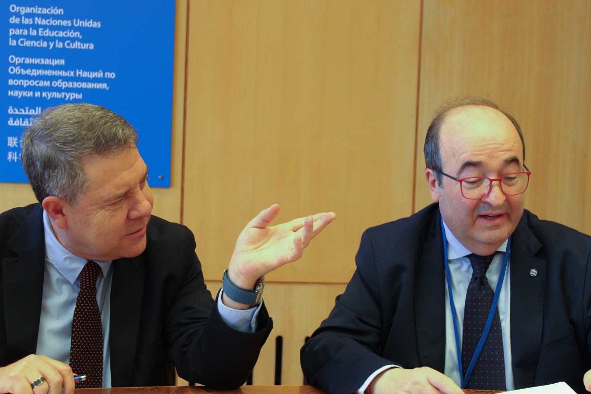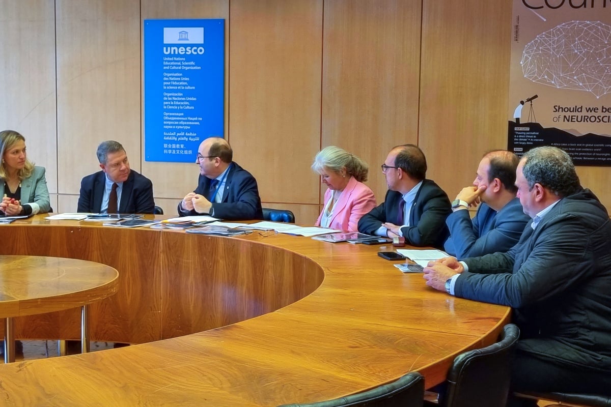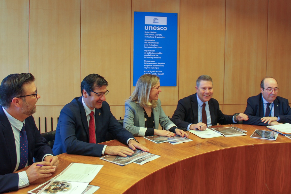 El presidente de Castilla-La Mancha, Emiliano García-Page, ha avanzado que el Gobierno regional impulsará a las candidaturas del olivar, el viñedo y las alfombras de serrín para que cuenten con la protección mundial de la Organización de las Naciones Unidas para la Educación, la Ciencia y la Cultura, (UNESCO), en cuya sede ha mantenido una reunión de trabajo para avanzar en la declaración de otros proyectos como el del Geoparque ‘Volcanes de Calatrava. Ciudad Real’ y el ‘Paisaje Dulce y Salado de Sigüenza y Atienza’, en la provincia de Guadalajara.