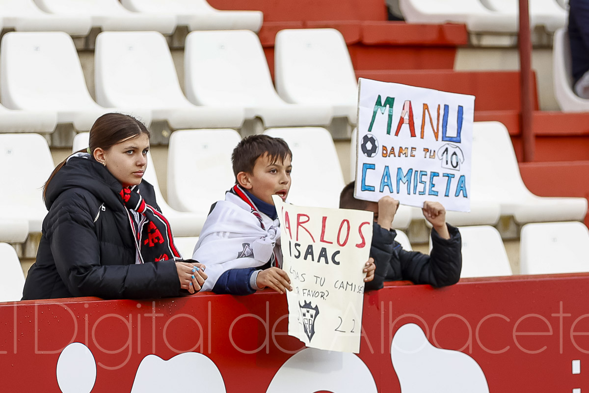 A continuación pueden ver una galería fotográfica de parte de la afición que asistió al coliseo blanco a seguir en directo las evoluciones de ‘su’ Albacete Balompié: