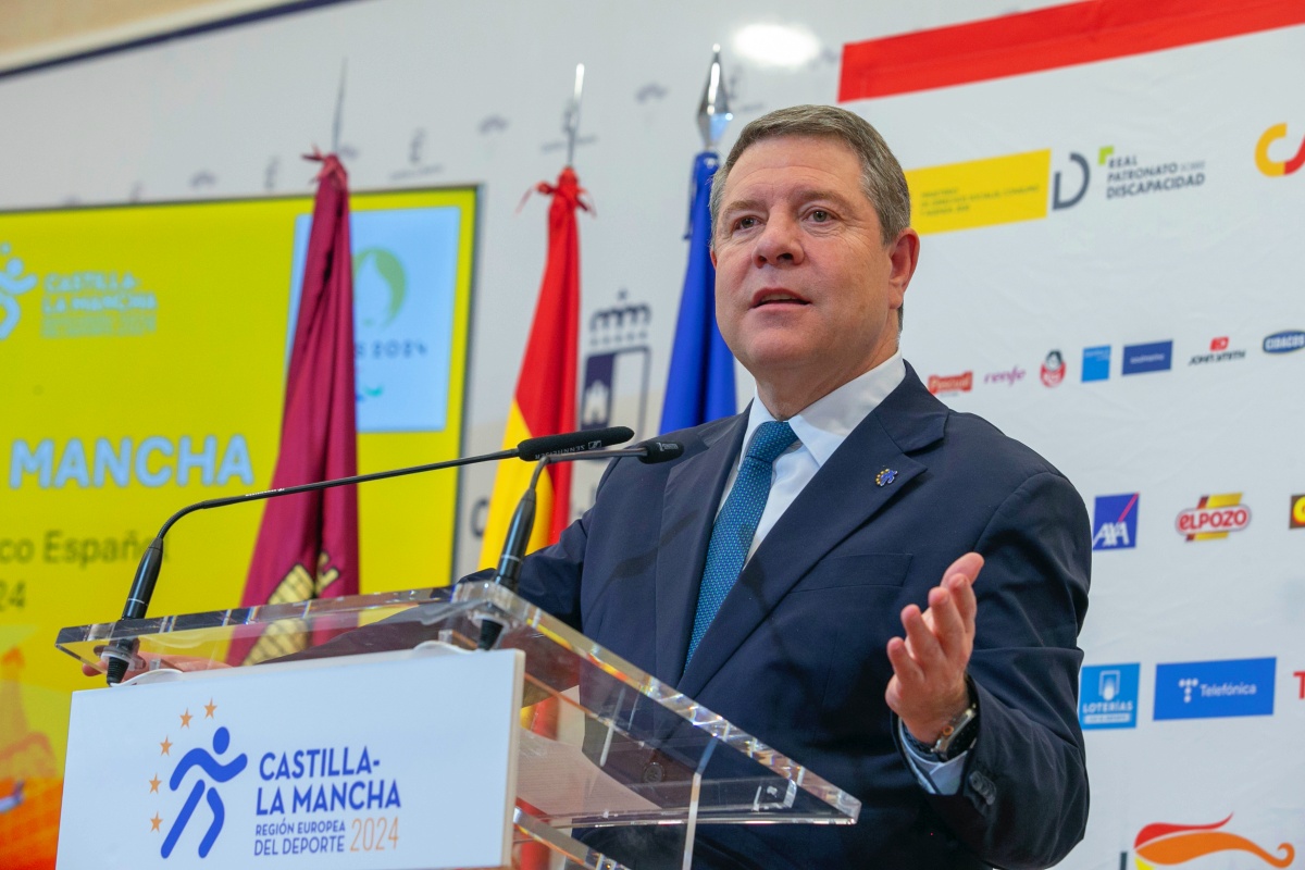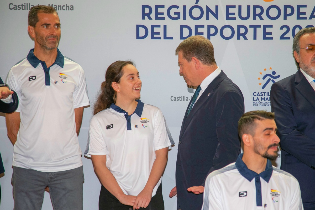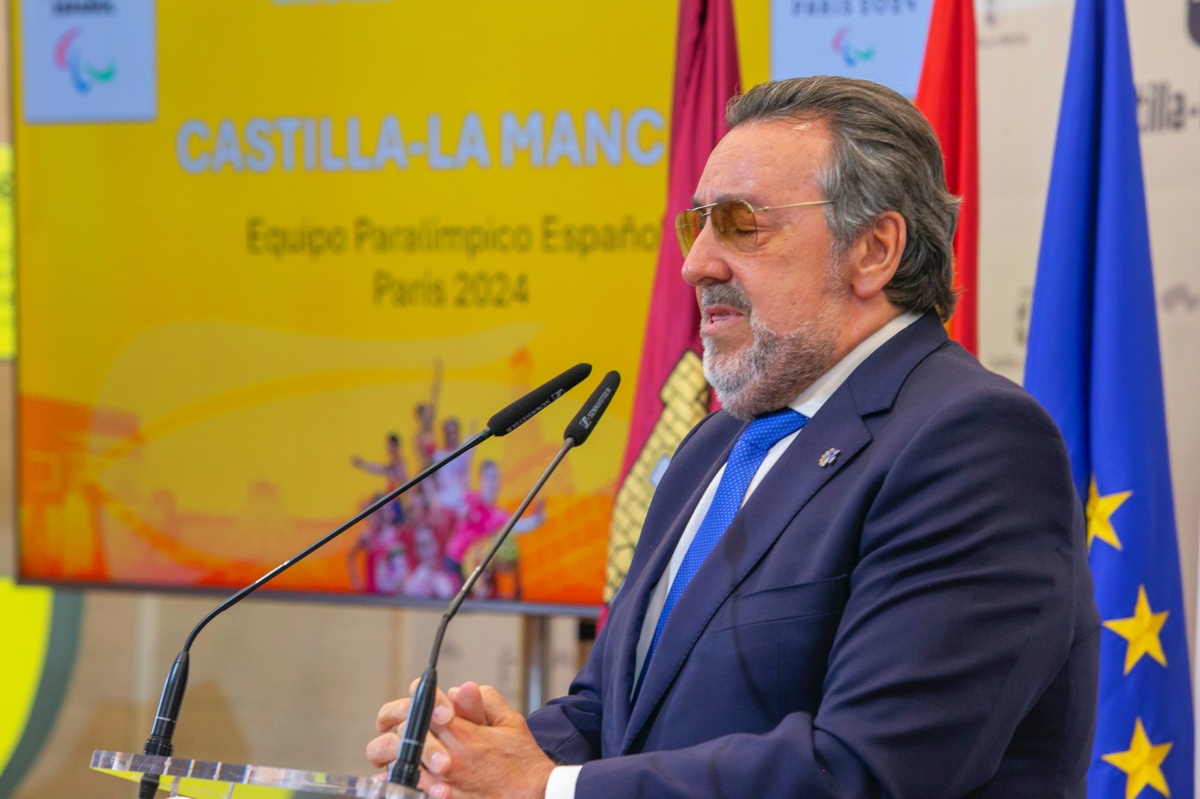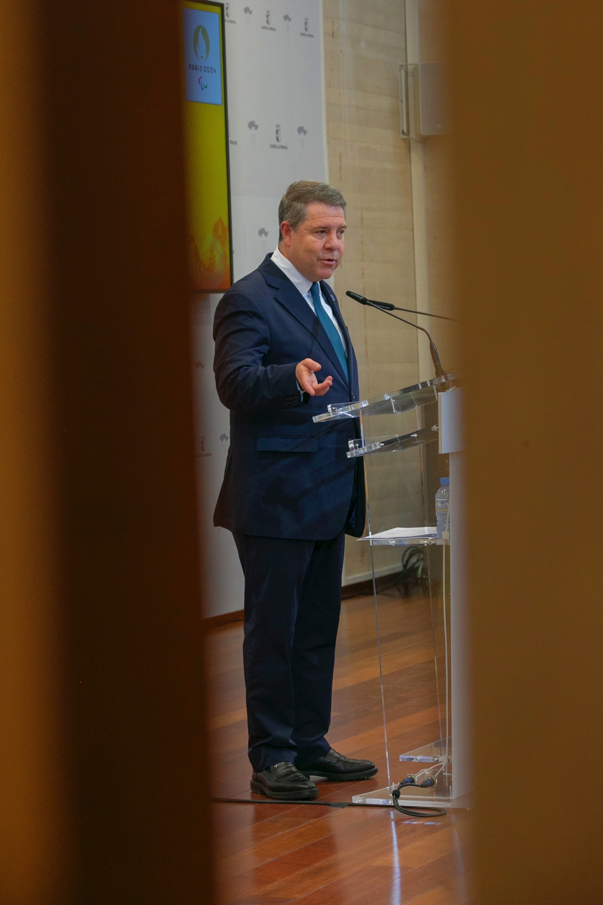 El jefe del Ejecutivo regional ha participado en la presentación de las y los deportistas castellanomanchegos del equipo paralímpico español preseleccionados para París 2024, que ha tenido lugar en la sede de la Consejería de Educación, Cultura y Deportes.