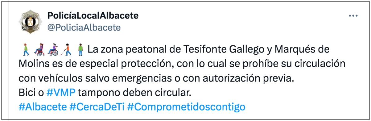 Para finalizar, la Policía Local de Albacete indicaba que “nunca se debe circular en patinete por las aceras ni por zonas peatonales”.