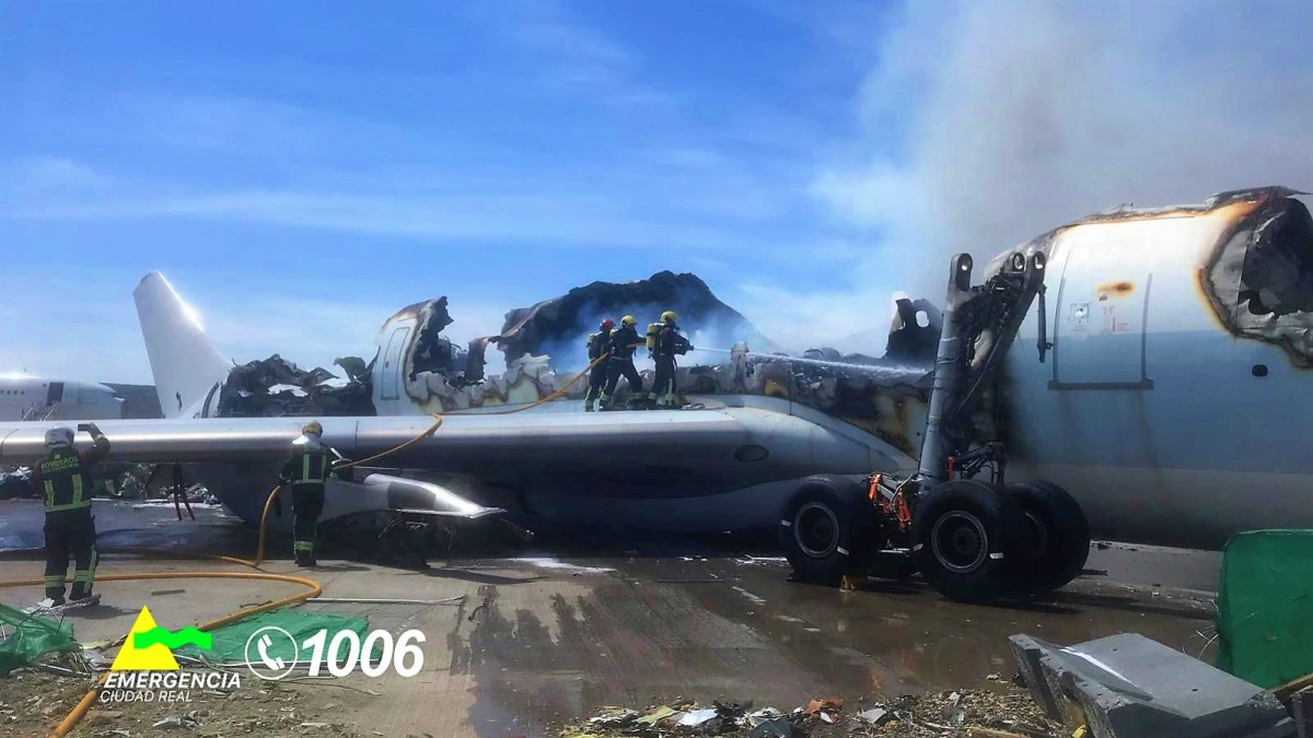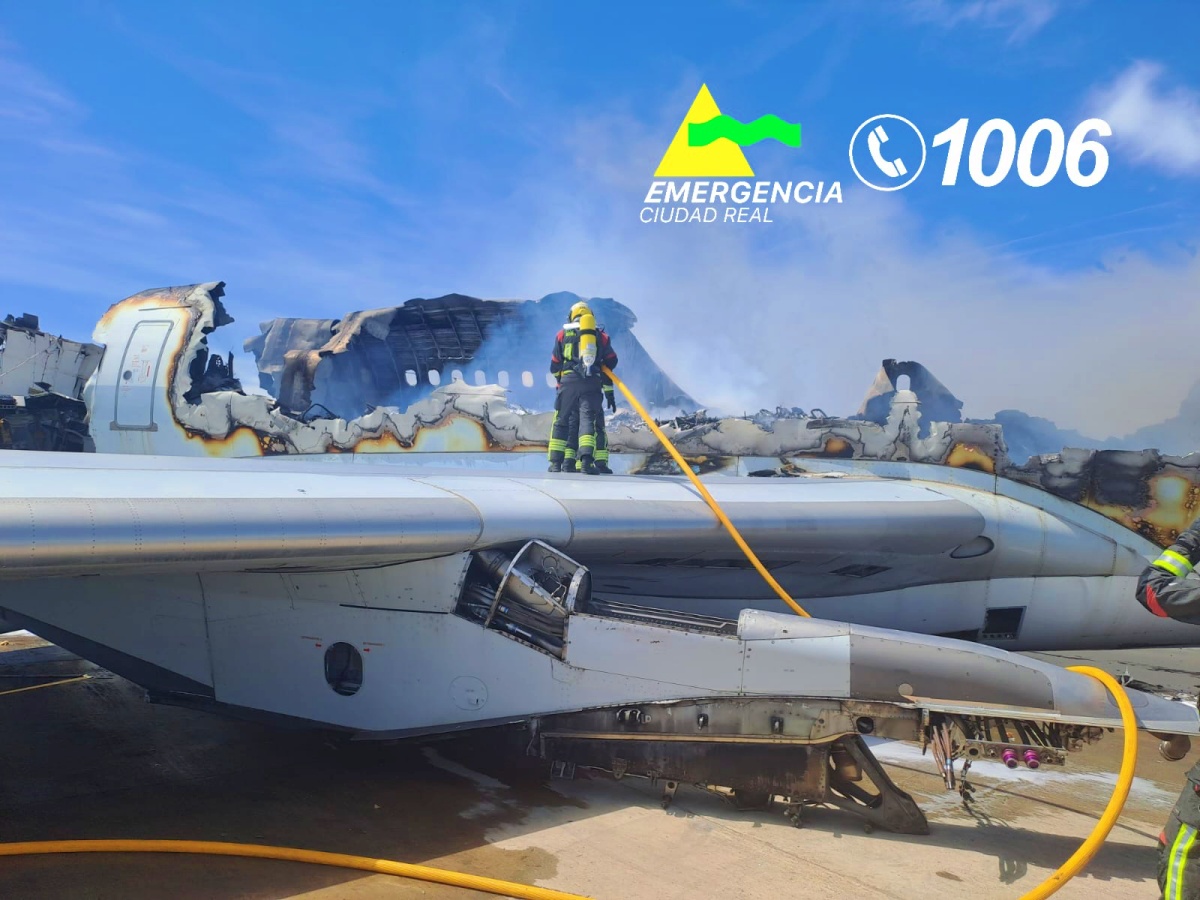Los bomberos han extinguido el incendio en la cola de un avión Airbus 330 situado en la plataforma de desmantelamiento del Aeropuerto de Ciudad Real, adonde se ha desplazado una ambulancia como medida preventiva aunque no se han registrado heridos.