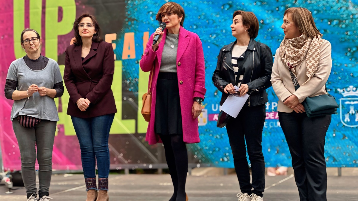 La concejala de Cultura, Elena Serrallé, ha asistido en la Plaza del Altozano al primer espectáculo incluido en el programa ‘La UP sale a la calle’, que ha consistido en una selección participativa de folklore y danzas del mundo a cargo de alumnos y profesores de la UP.