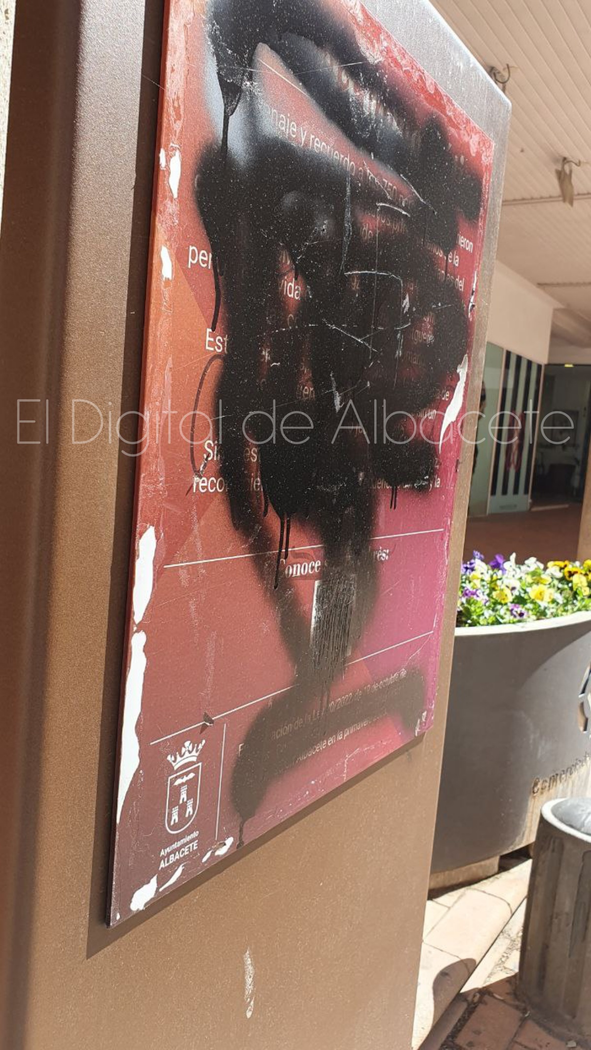 Concretamente, aparecía una pintada realizada con pintura negra que cubría la totalidad del texto que se puede leer en este monolito en memoria de las víctimas de la dictadura franquista en Albacete. Esta gran pintada ha dañado este elemento, tapando por completo texto a modo de homenaje que el Ayuntamiento de Albacete realizaba a estas personas.