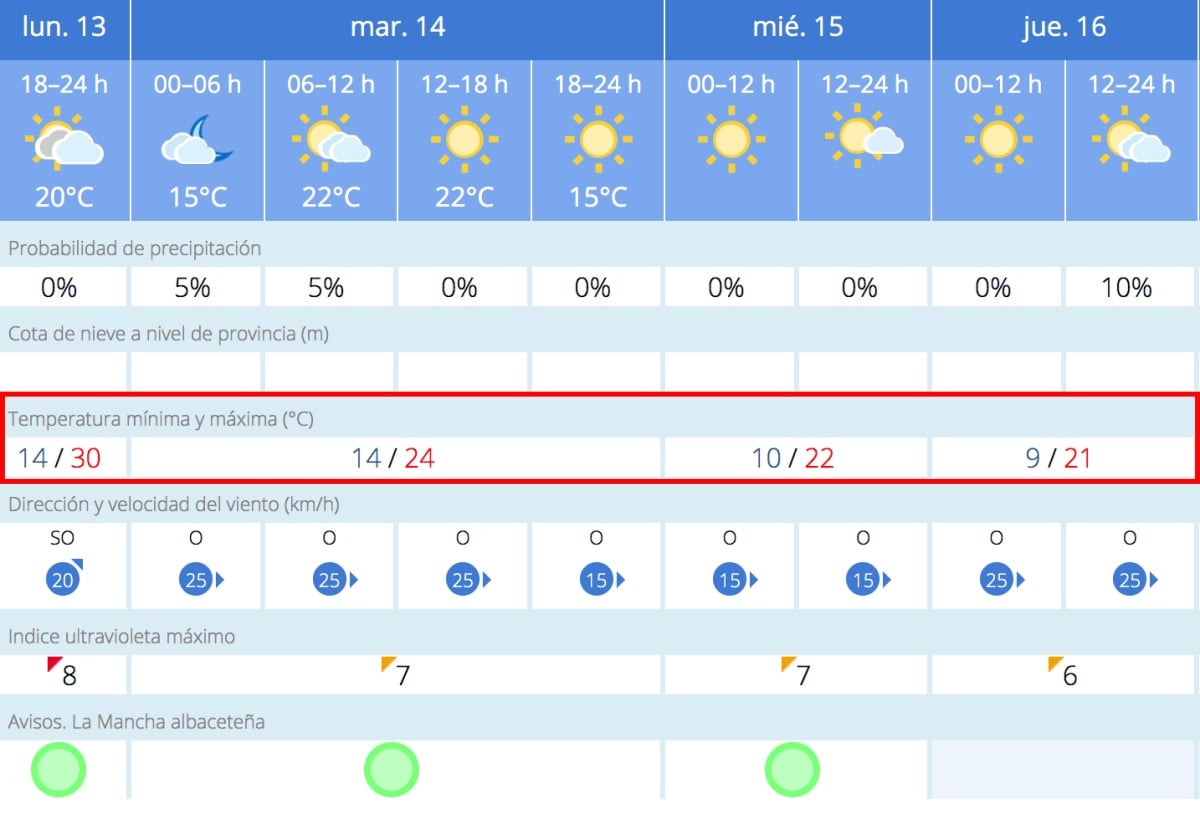 14ºC de mínima y 24 de máxima en Albacete