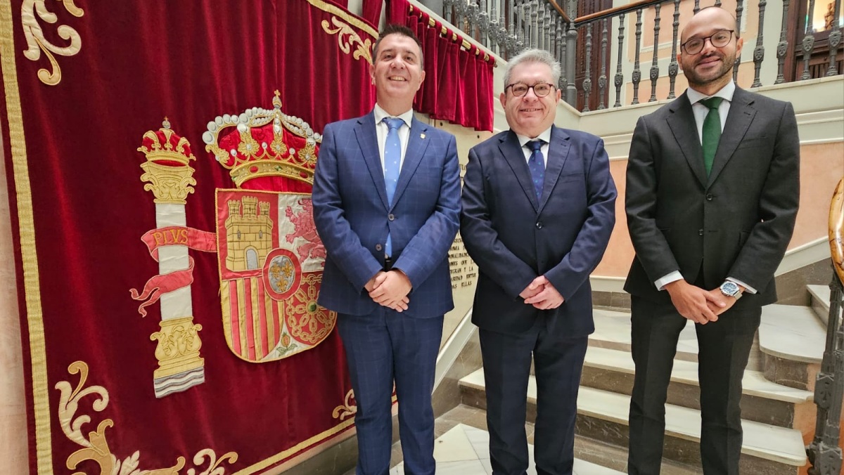 El presidente de la Diputación de Albacete, Santi Cabañero, y el vicepresidente, Fran Valera han recibido este viernes en el Palacio Provincial la visita institucional del presidente de la Cámara de Cuentas de Castilla-La Mancha, Fernando Andújar.