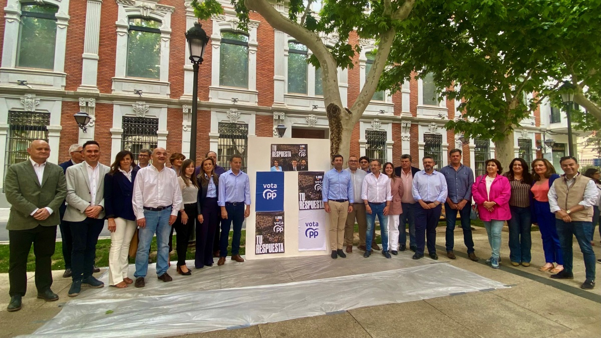 Con la tradicional pegada de carteles, el Partido Popular de Albacete ha dado el pistoletazo de salida a la campaña electoral de las elecciones europeas del próximo día 9 de junio, en “las que nos jugamos el futuro, pues son unas elecciones trascendentales”, tal y como ha destacado el presidente provincial de los ‘populares’, Manuel Serrano, junto al candidato albacetense que forma parte de la lista al parlamento europeo que encabeza Dolors Monserrat, Santiago Sánchez, y resto de cargos públicos del Partido Popular.
