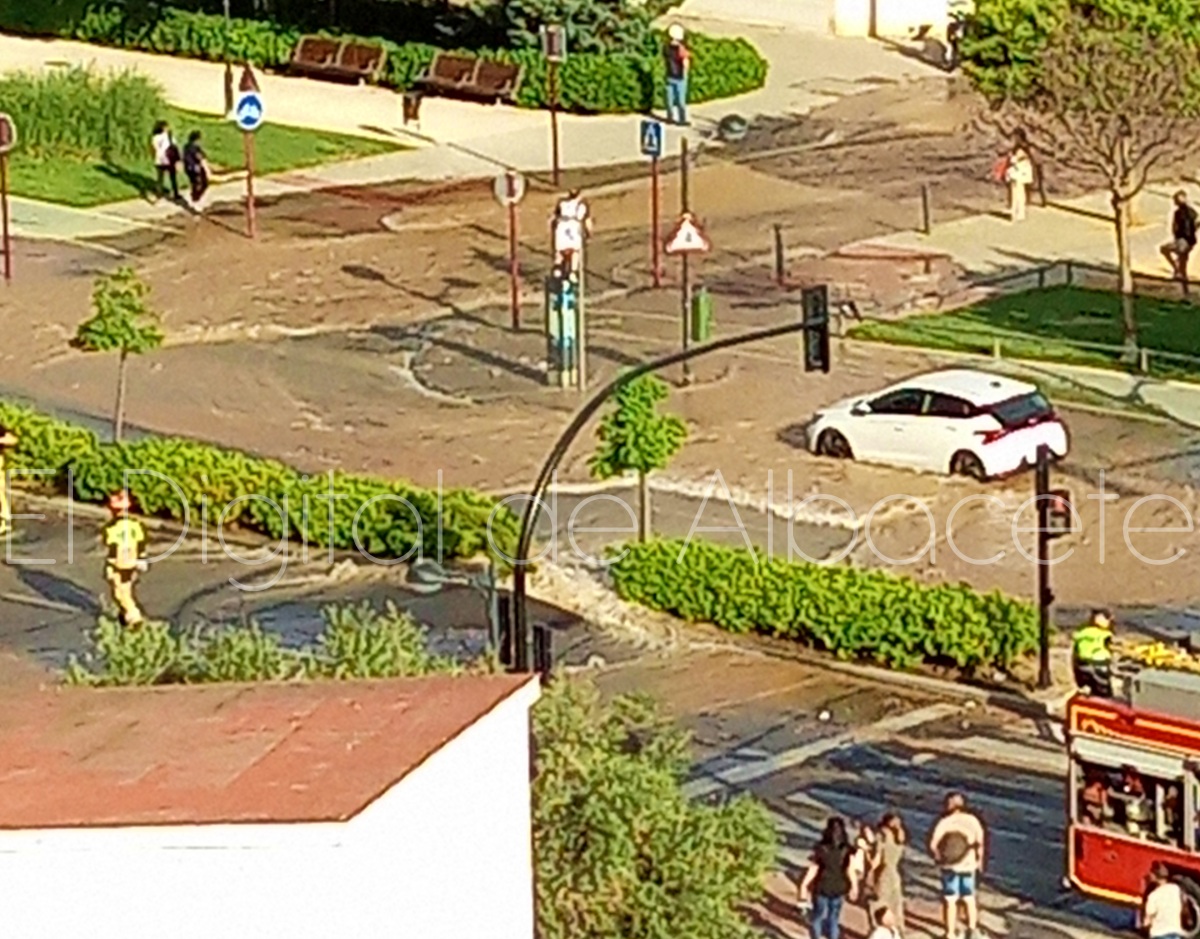 Debido a la rotura de una tubería en las inmediaciones de la confluencia de la calle Laurel y la Circunvalación, la zona ha quedado completamente anegada y ha sido necesaria la intervención en primera instancia de los Bomberos del Ayuntamiento de Albacete, y de la Policía Local.