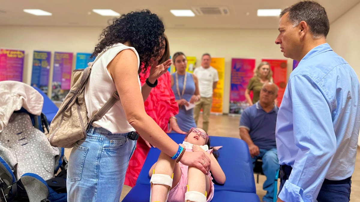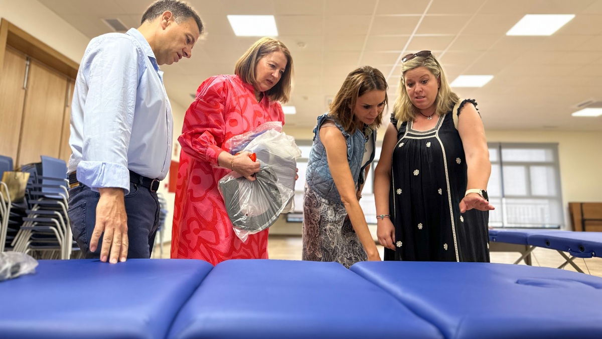 Manuel Serrano se ha pronunciado de este modo durante la visita que ha realizado al Centro de Participación ‘Ágora’, donde ya cuentan con una de estas camillas, acompañado por la concejala de Asuntos Sociales, Llanos Navarro, el presidente de Cocemfe, Marcelino Escobar, y miembros de la junta directiva de Un@ Más.