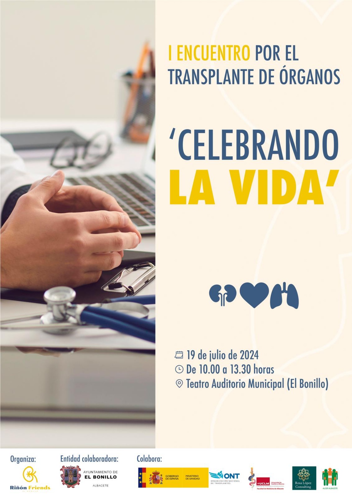 El próximo 20 de julio se reunirán profesionales del Complejo Hospitalario Universitario de Albacete, la asociación ALCER, y un cartel de grandes artistas entre los que se encuentra La La Love You, Varry Brava, Vuelo Fidji y Modesto Colorado, que harán disfrutar de la mejor música a los asistentes al festival, que celebrarán la vida en una jornada inolvidable para El Bonillo.