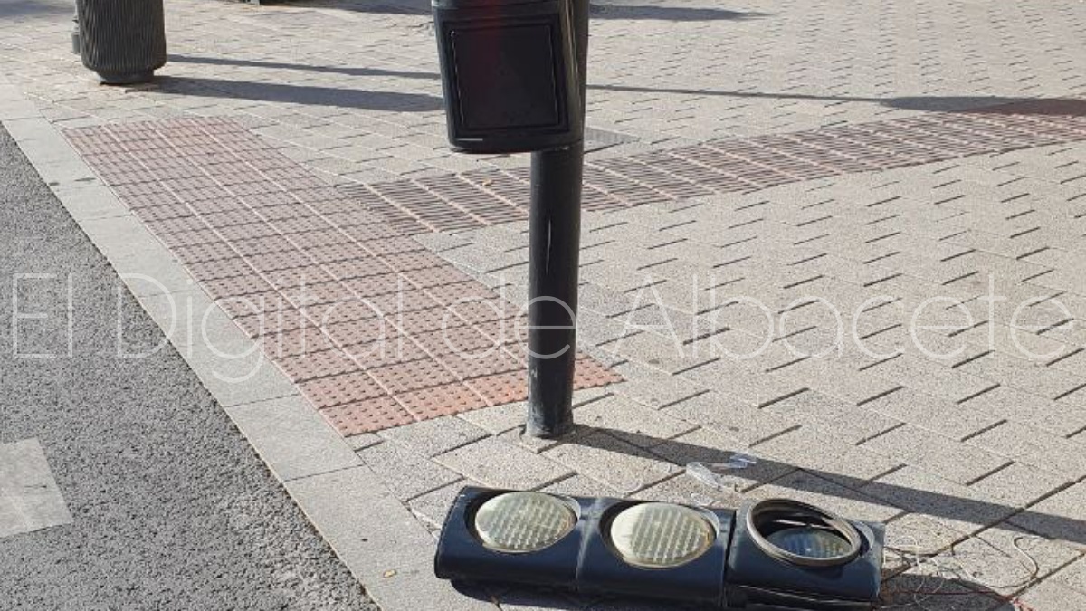 Concretamente, un coche chocaba contra el semáforo que controla el cruce de la calle Rosario frente a la emblemática Posada. A causa del choque se desprendía la cabeza de este elemento que regula el tráfico en este céntrico punto de la capital albaceteña.
