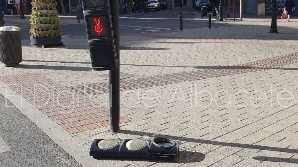 Concretamente, un coche chocaba contra el semáforo que controla el cruce de la calle Rosario frente a la emblemática Posada. A causa del choque se desprendía la cabeza de este elemento que regula el tráfico en este céntrico punto de la capital albaceteña.
