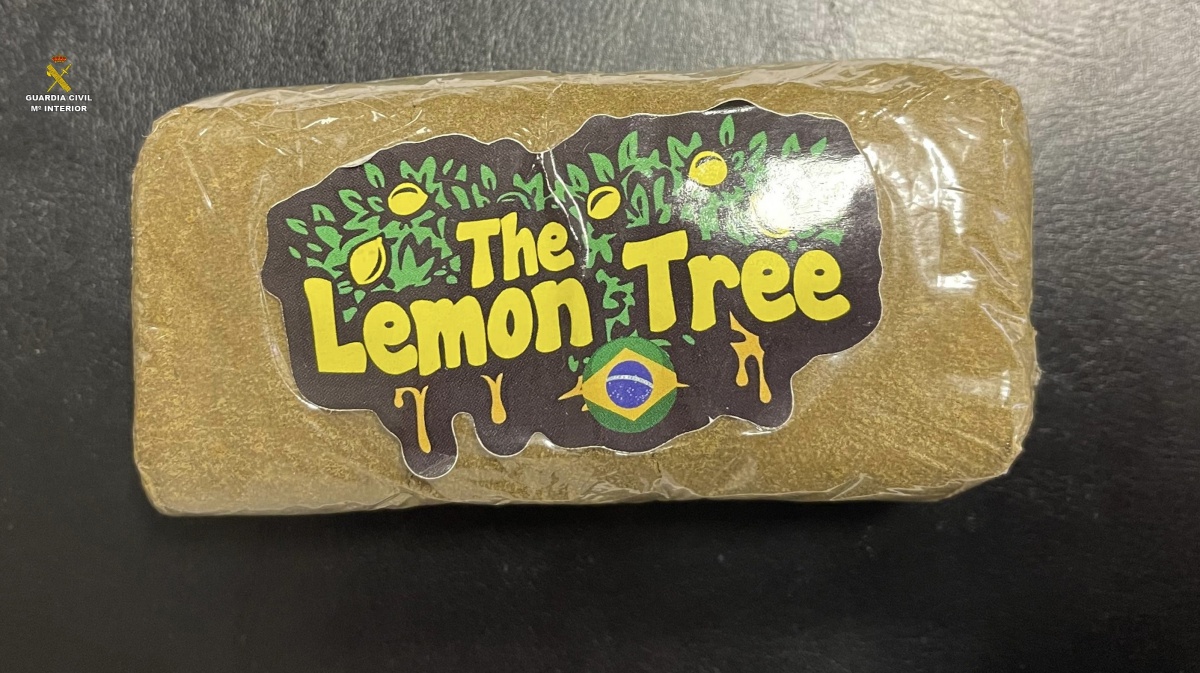 Realizando las comprobaciones oportunas, los agentes perciben un fuerte olor a hachís, por lo que procedieron a la inspección del vehículo, localizando oculta en el interior de la palanca de cambios, una tableta envuelta en plástico transparente con la inscripción ‘The Lemon Tree’, de una sustancia compacta y resinosa de color marrón de similares características a hachís, reconociendo en ese momento el conductor que efectivamente se trata de esa sustancia.