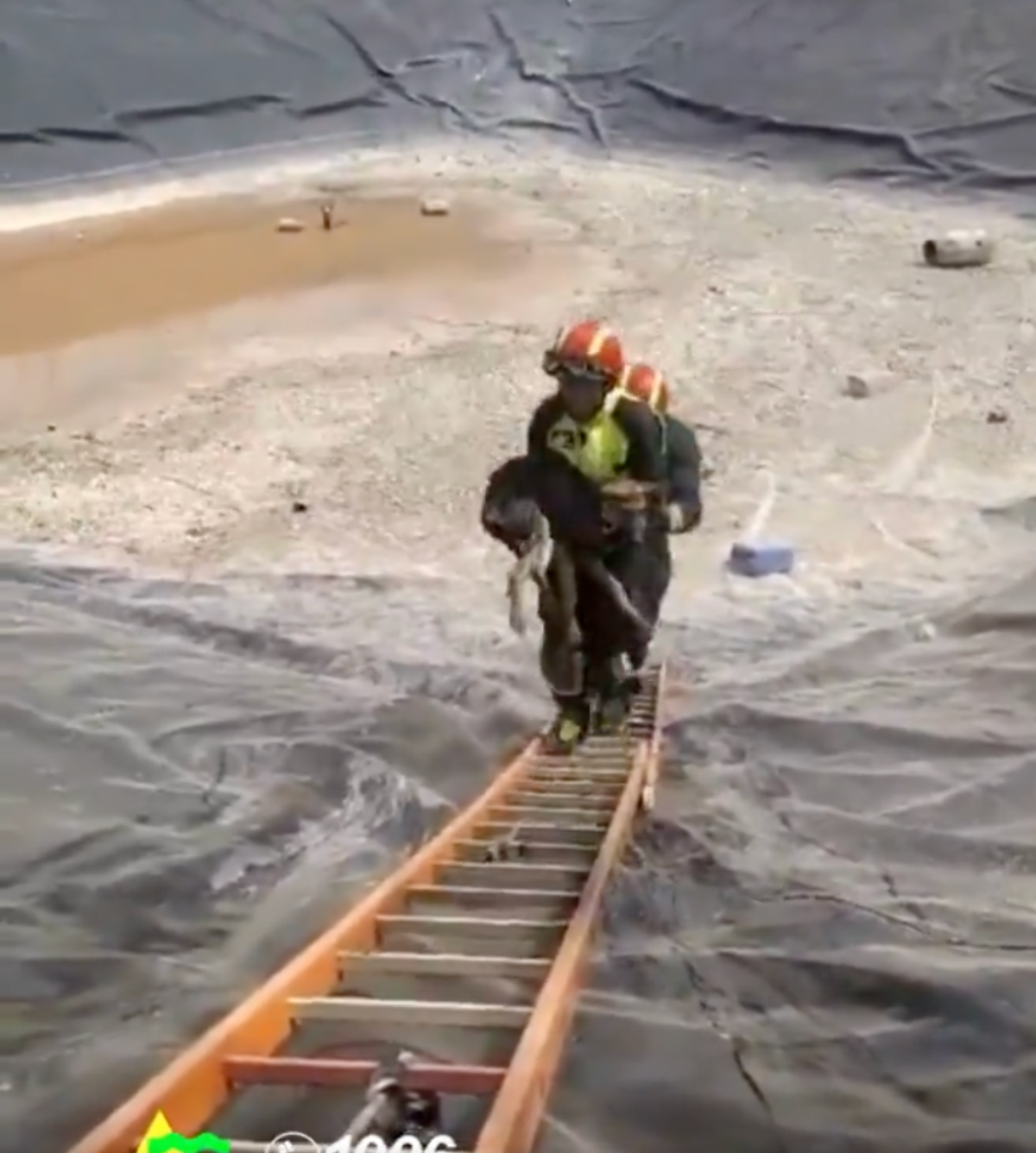 Para proceder al rescate de estos animales, los bomberos utilizaron unas escaleras para acceder al interior de la balsa. Así, lograron sacar uno a uno a estos tres cachorros, salvándolos de una muerte segura al encontrarse atrapados, sin agua y haciendo frente a las altas temperaturas en este punto próximo a la provincia de Albacete.