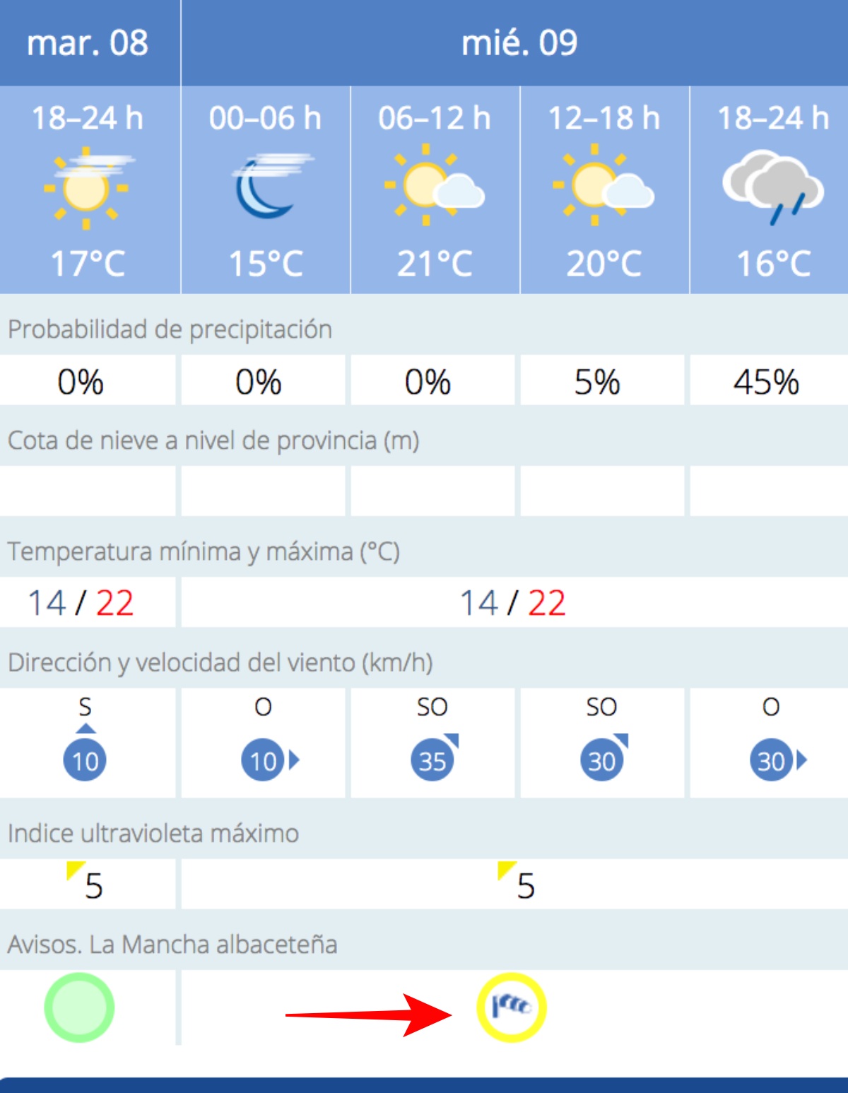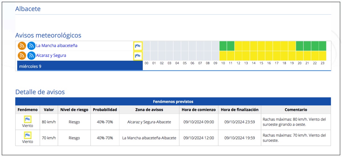 La previsión para Albacete capital según la AEMET es la siguiente: