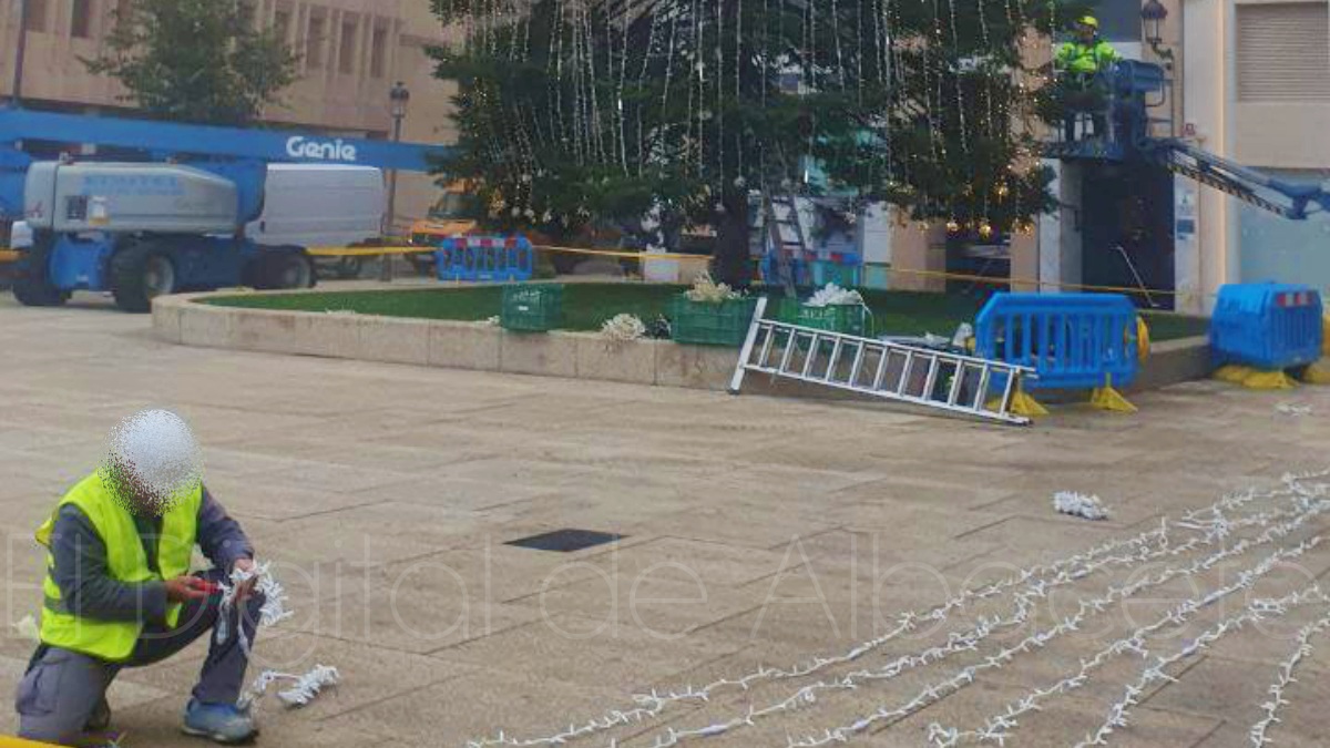 Los hechos ocurrieron en torno a las 00:30 horas de este lunes, cuando una llamada alertó a la Policía Local de Albacete de que un hombre estaba arrancando la iluminación navideña que había sido colocada días atrás en el gran árbol que hay en la Plaza del Altozano, introduciéndolas todas ellas en bolsas industriales para poder llevárselas.