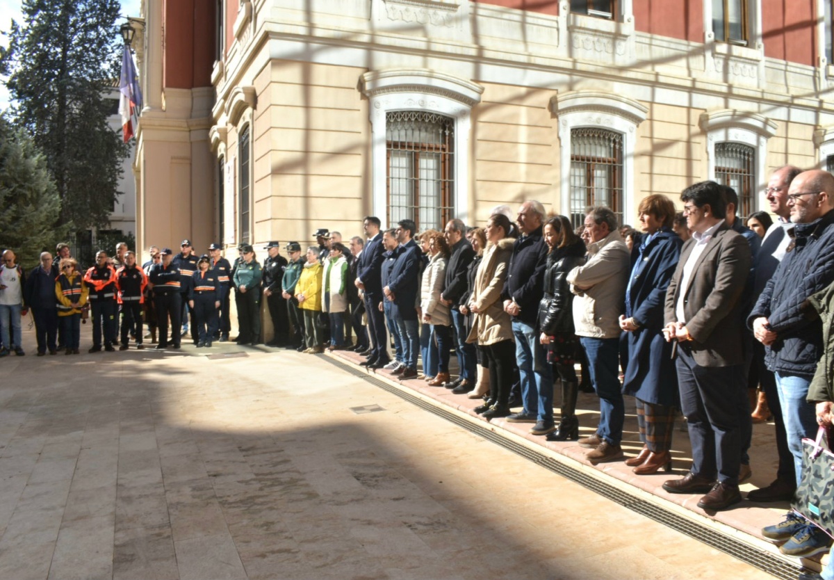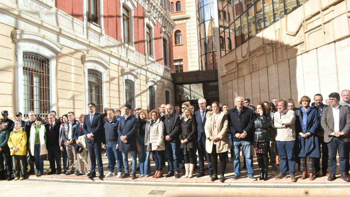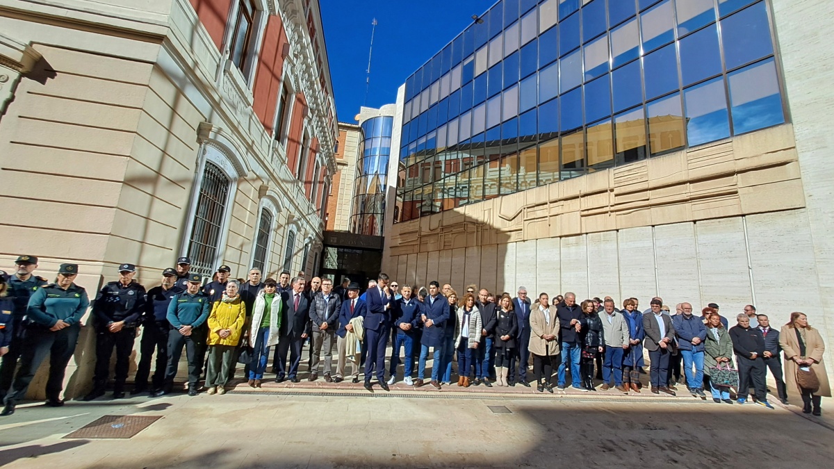 El diputado provincial del Área Social, José González, en nombre del presidente de la institución, Santi Cabañero, que se encuentra en Letur coordinando el apoyo de la institución a esta localidad; el alcalde de la ciudad, Manuel Serrano; y el consejero de Educación, Cultura y Deportes, Amador Pastor, junto a autoridades civiles y militares y representantes del tejido social, se han concentrado este medio día a las puertas del Palacio Provincial.