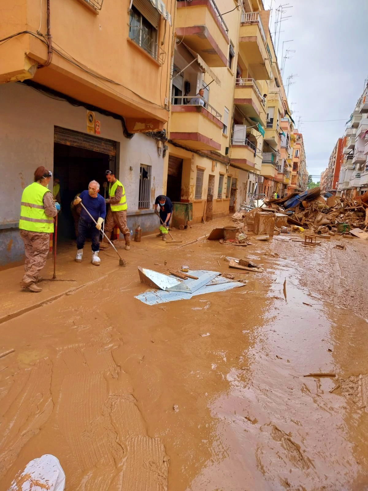 Cualquier ayuda es poca en las zonas afectadas y militares pertenecientes al Ala 14 de la Base Aérea de Los Llanos de Albacete, han sido desplazados a localidades de la zona cero y realizan labores humanitarias y de limpieza para aportar su granito de arena a que un mínimo atisbo de normalidad pueda regresar a dichas localidades.