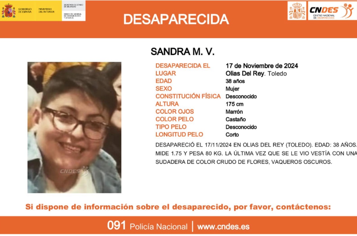 El Centro Nacional de Desaparecidos ha informado a través de redes sociales de la desaparición de Sandra en la localidad de Olías del Rey, en la provincia de Toledo.