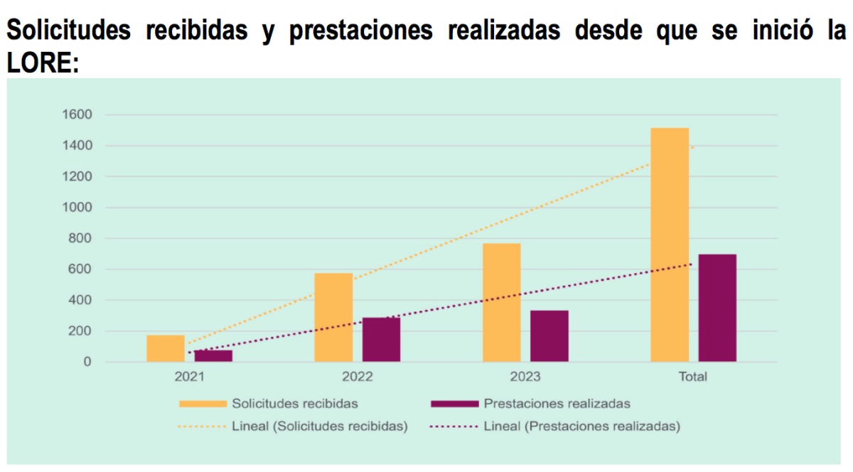 Desde su entrada en vigor y hasta el 31 de diciembre de 2023, se han atendido 1.515 solicitudes de prestación de ayuda par a morir: 173 durante 2021; 576 en 2022; y 766 durante el año 2023.