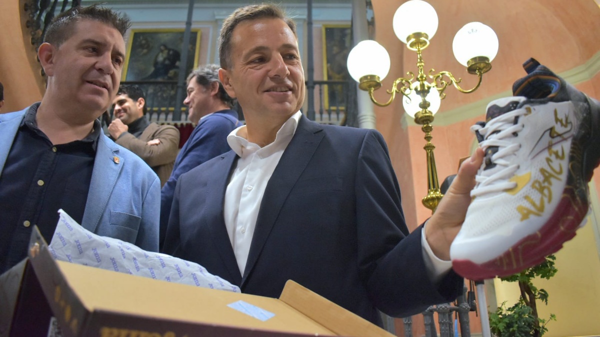 Cabañero obsequia al alcalde la zapatilla de la provincia de Albacete