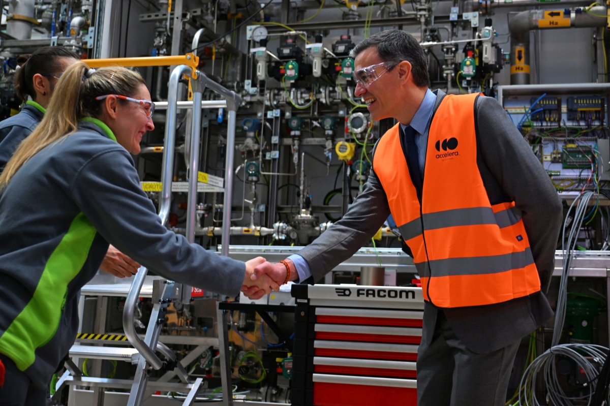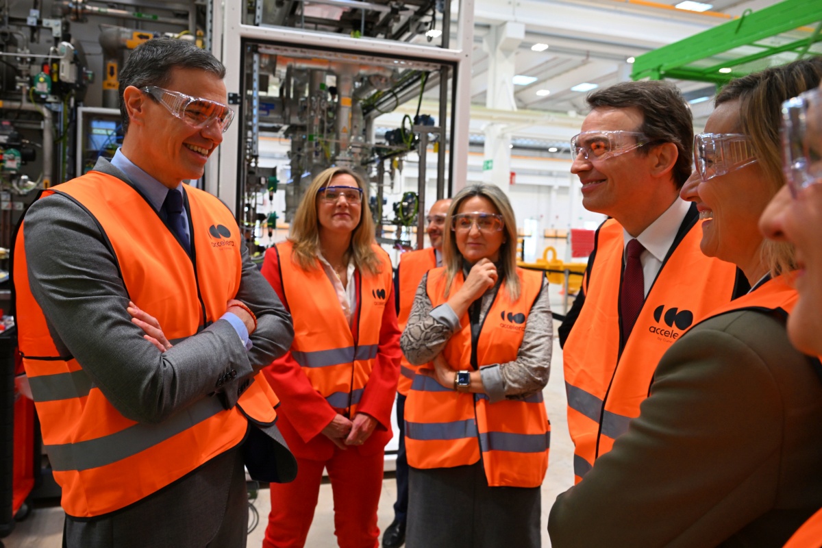 El presidente del Gobierno de España, Pedro Sánchez, ha visitado este martes Accelera by Cummins, en Guadalajara, una planta de fabricación de electrolizadores para producir hidrógeno verde. El jefe del Ejecutivo ha estado acompañado en su visita a la fábrica por el presidente de Castilla-La Mancha, Emiliano García-Page, y por la delegada del Gobierno en Castilla-La Mancha, Milagros Tolón.