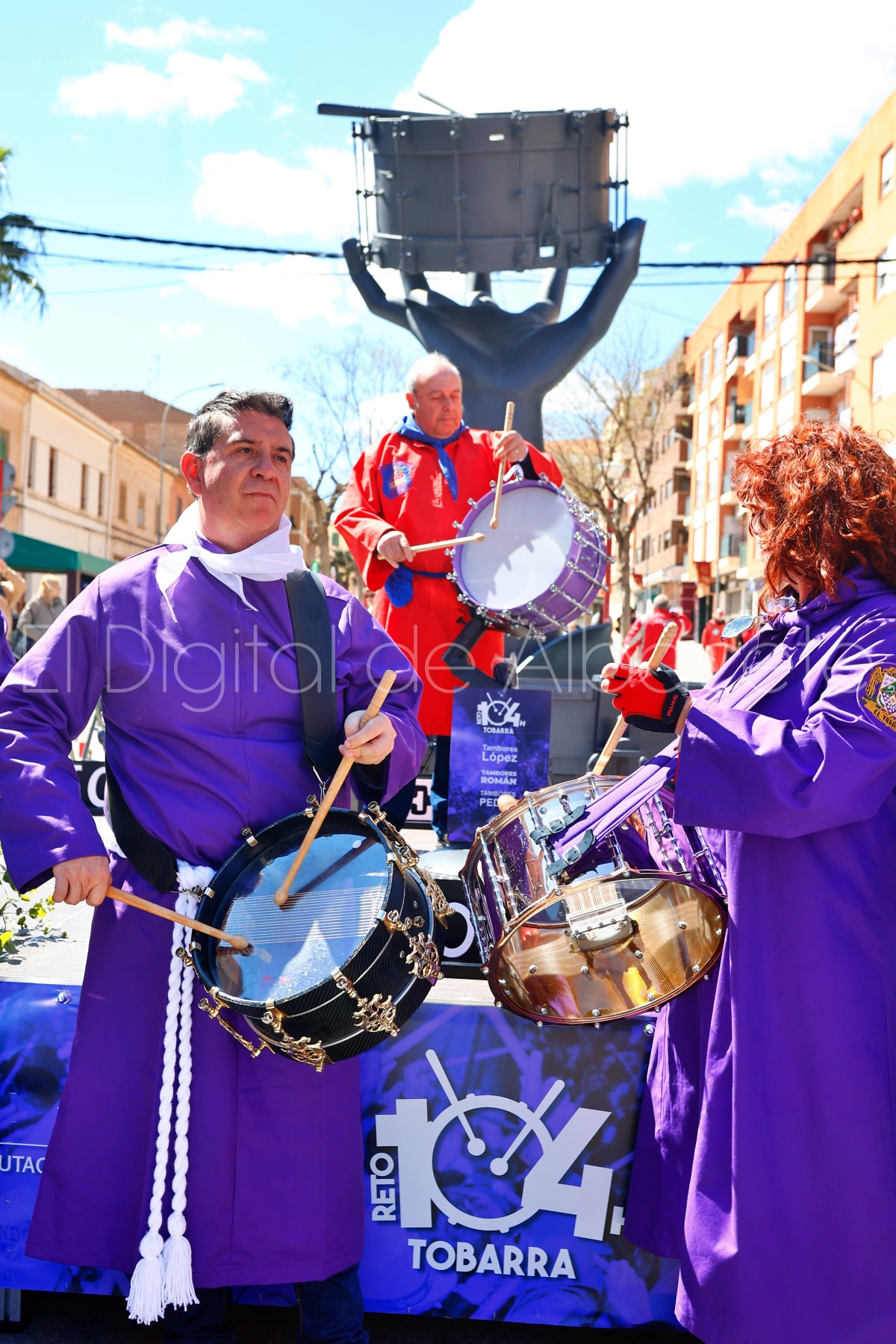 El silencio se rompía a golpe de tambor en Tobarra a las 16:00 horas de este Miércoles Santo y no volverá a escucharse hasta dentro de casi cuatro días, cumpliendo con el ‘Reto 104’ y haciendo historia.