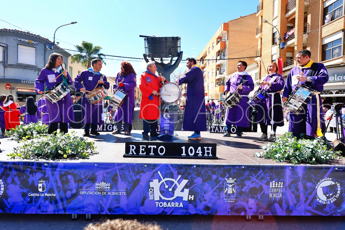 Un desafío impulsado por la Asociación de Amigos del Tambor de Tobarra que aspira a ser un hito de proyección nacional e internacional, reuniendo a más de 400 personas que, organizadas en turnos, harán resonar sin descanso durante cuatro días y medio un mismo tambor. De este modo, el presidente de la Asociación Amigos del Tambor de Tobarra, José Manuel Cano, sostenía que el ‘Reto 104’ “va a hacer historia”, poniendo de relieve las cifras de esta gesta que contará con “416 personas que participarán tocando este tambor” de forma ininterrumpida hasta el próximo Domingo de Resurrección.