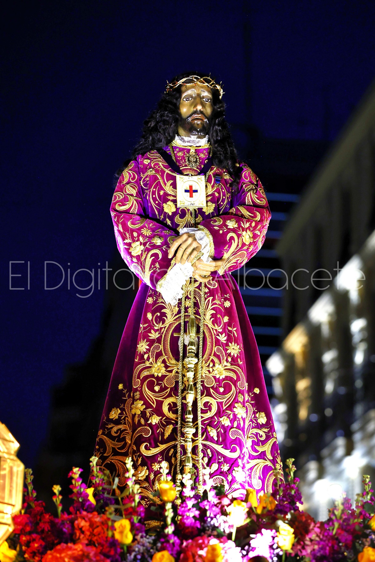 De forma multitudinaria han acompañado los albaceteños este Jueves Santo al Cristo de Medinaceli por las calles de la capital. La fe y la devoción por esta imagen convierten a esta procesión en una de las más significativas de la Semana Santa de Albacete.
