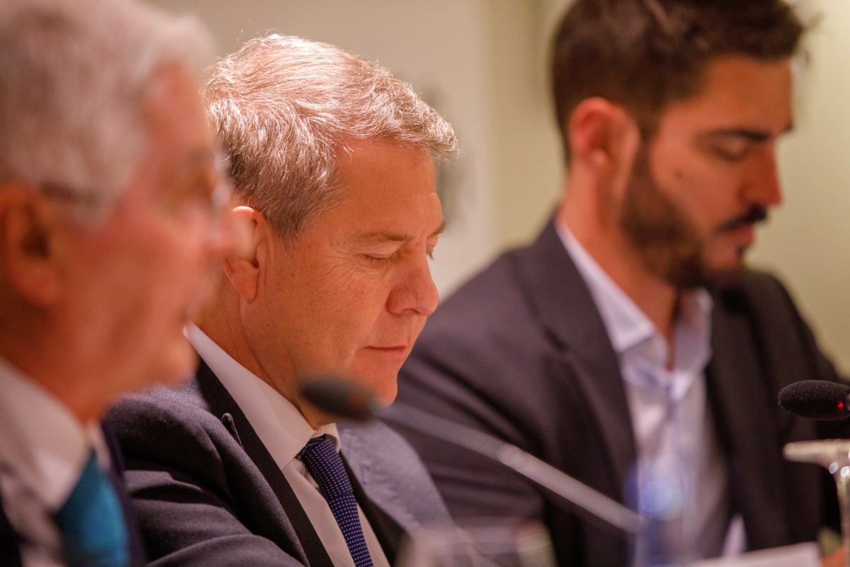 En este acto, celebrado en el hotel Eurobuilding de la capital de España, el jefe del Gobierno autonómico ha estado acompañado por el vicepresidente primero de la Junta, José Luis Martínez Guijarro; el vicepresidente segundo, José Manuel Caballero; el consejero de Hacienda, Administraciones Públicas y Transformación Digital, Juan Alfonso Ruiz Molina; y la consejera Portavoz del Gobierno regional, Esther Padilla, entre otras autoridades y personalidades.