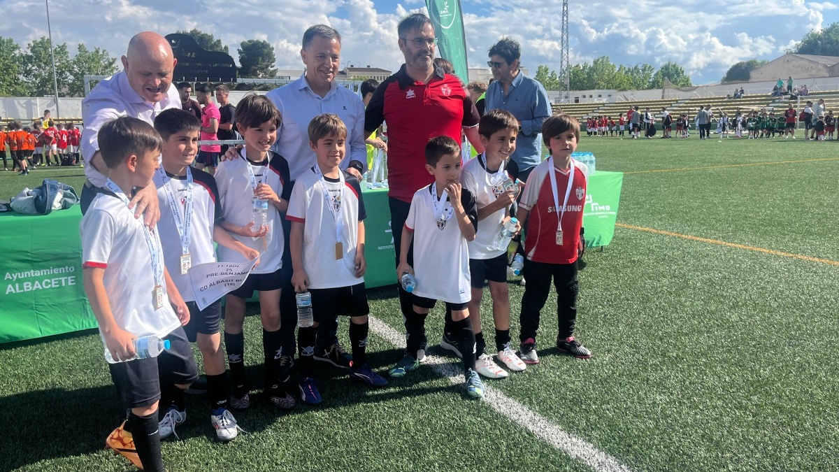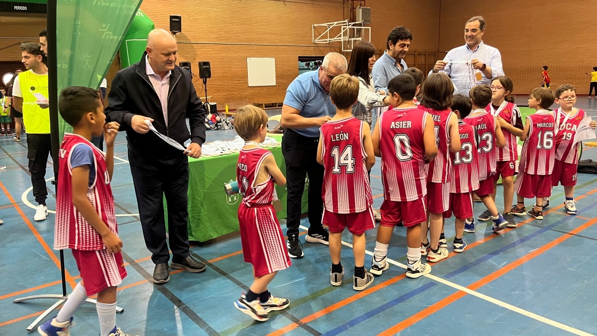 El alcalde Manuel Serrano y el concejal de Deportes Francisco Villaescusa han participado en la entrega de los trofeos correspondientes a los Juegos Deportivos Municipales de baloncesto y fútbol, que se han celebrado en el Pabellón de Parque Sur y en campo de Fútbol ‘José Copete’ para las categoría mini y prebenjamín.