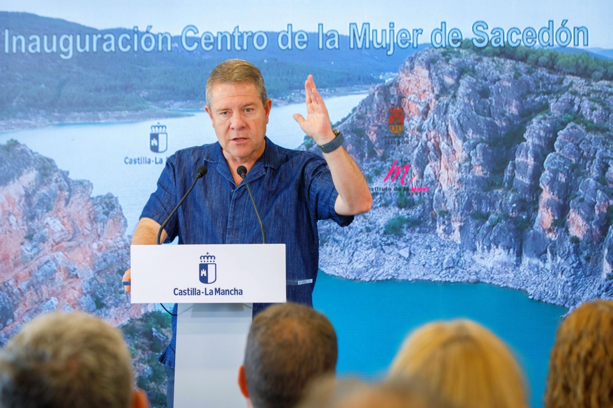 El presidente de Castilla-La Mancha, Emiliano García-Page, ha inaugurado hoy en Sacedón el Centro de la Mujer. Desde allí ha avanzado que el 24 de julio se celebrará la Mesa Regional del Agua “donde queremos renovar el acuerdo global que tenemos en esta región, por lo que pido que vaya todo el mundo”, ha sugerido.