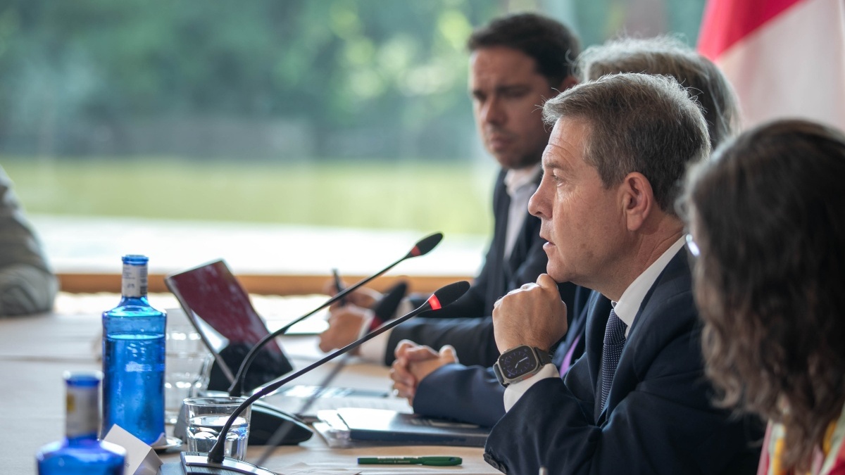 El presidente autonómico ha estado acompañado en esta sexta edición de la Mesa Regional del Agua de Castilla-La Mancha por la consejera de Desarrollo Sostenible, Mercedes Gómez, entre otras autoridades y representantes de la sociedad castellanomanchega.