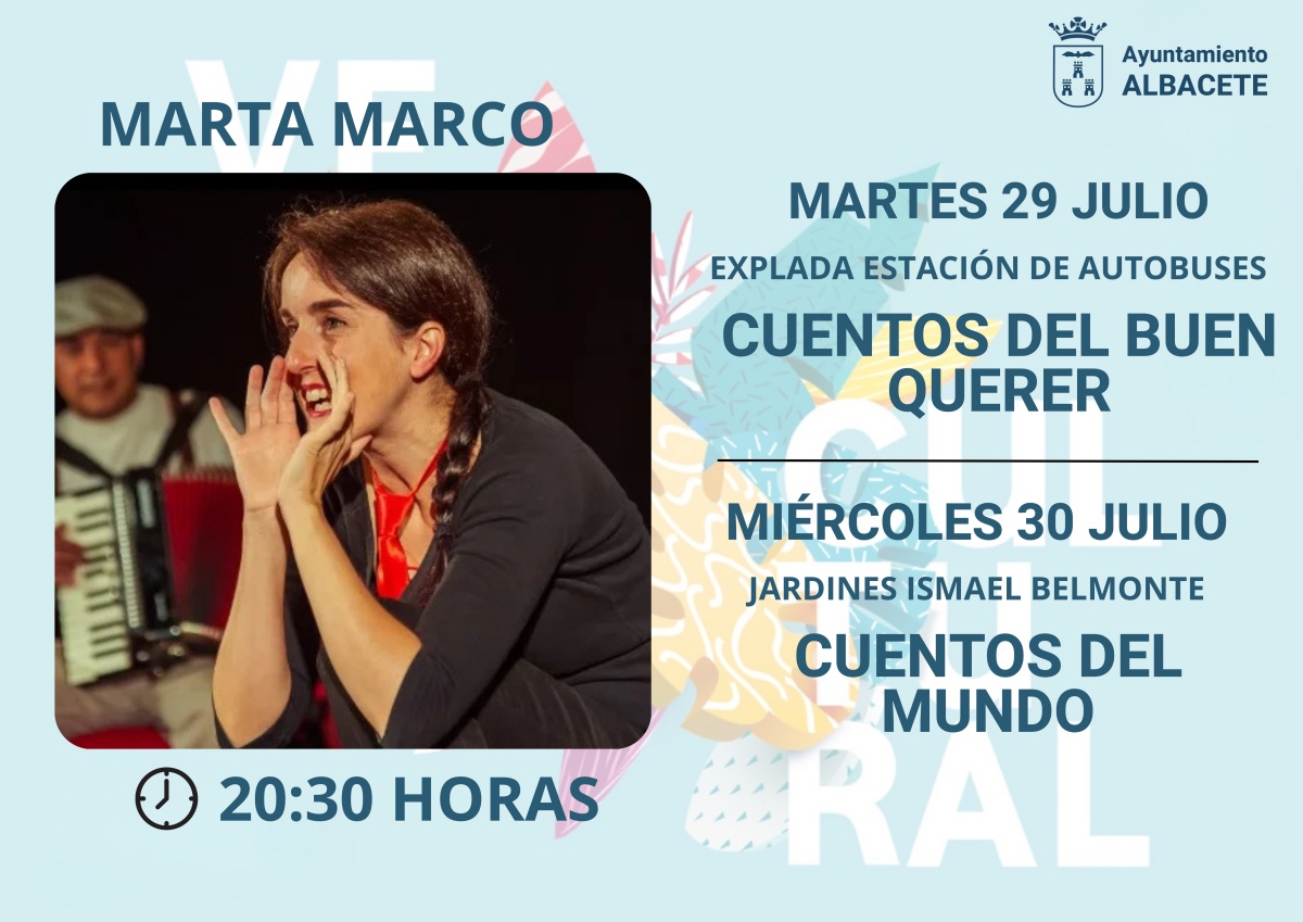El Verano Cultural 2025 sigue llenando Albacete de propuestas para disfrutar en familia y mañana, miércoles 30 de julio, será el turno del cuentacuentos infantil ‘Cuentos del Mundo’, a cargo de la narradora Marta Marco.