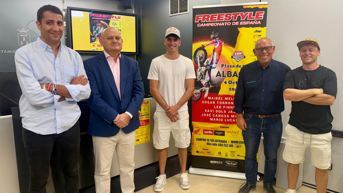 El concejal de Deportes Francisco Villaescusa ha presentado en rueda de prensa el campeonato de España de Freestyle Motocross, acompañado por los pilotos Maikel Melero y José Mincha, y Juan Antonio Lafuente por parte de la organización, además del diputado provincial Daniel Sancha.