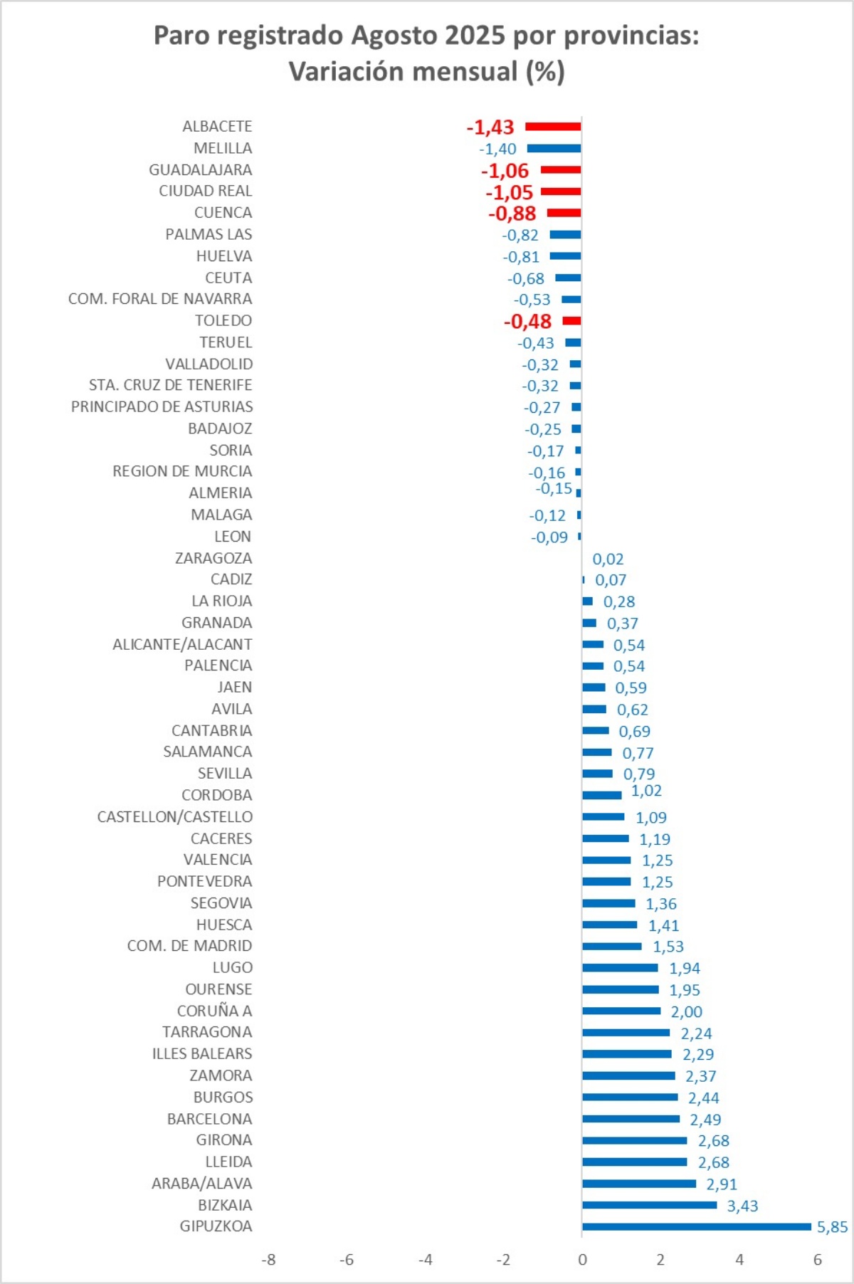 La provincia de Albacete lidera el descenso del paro en España. Según datos oficiales, la provincia albaceteña se sitúa la cabeza en el descenso del desempleo en el mes de agosto en nuestro país.