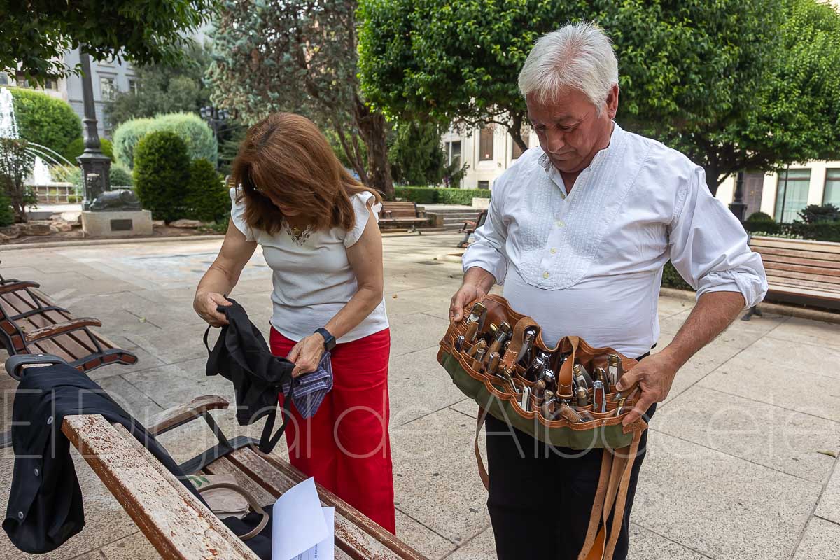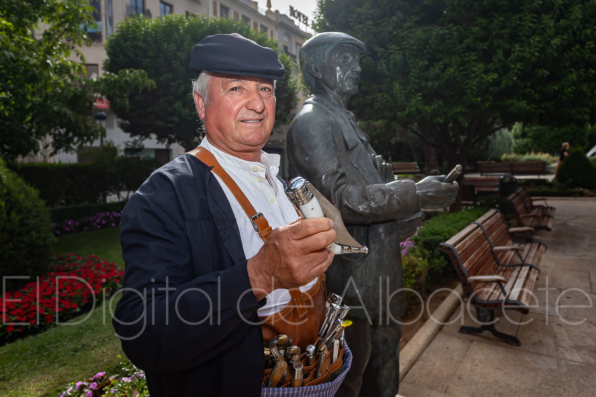 Y como buen mochilero de corazón, Ángel Escot guarda una gran colección de navajas que ronda “las 100 navajitas”, explica, y manifiesta que “cuchillero no soy, pero coleccionista sí, me gustan muchísimo y en Feria siempre cae alguna navaja para la colección”. Unas navajas que luego luce en su traje en Feria. Y es que Escot no falla con la tradición de ‘feriarse’, normalmente una navaja. “Vivo la Feria con mucho orgullo”, sostiene, y explica que “siempre paso a por un chorimorci, un Miguelito y por supuesto una sidra, luego caen los cafés y algún vino de ‘La Burrica’”. Además, explica que “todos los años voy a alguna corrida de toros y algún concierto; un poquito de todo”. Y es que como buen albaceteño, Escot es “muy feriante, aunque antes más que ahora porque con los años cambian las cosas”.