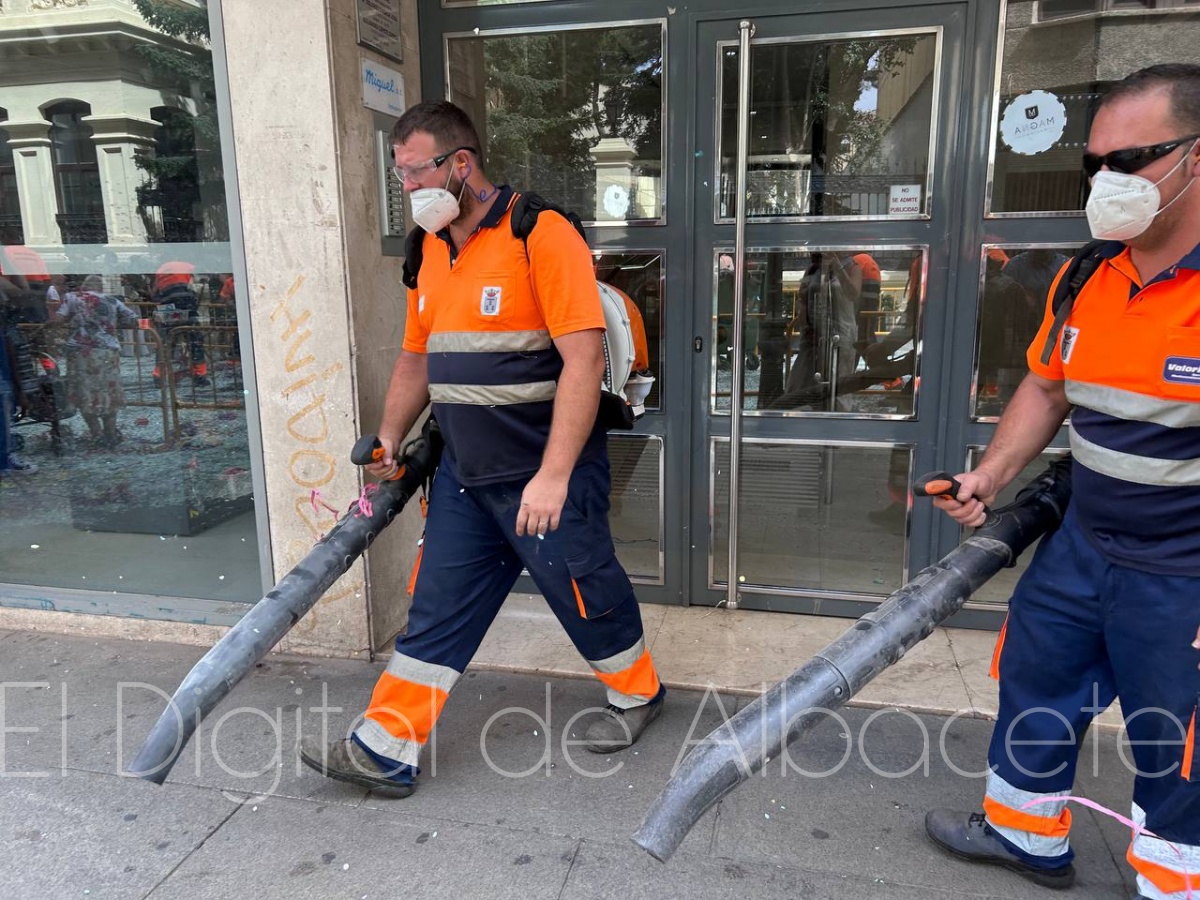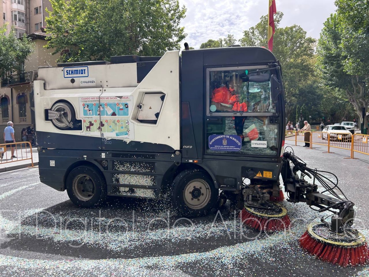 Un equipo humano y técnico perfectamente coordinado ha hecho posible que, en apenas unos minutos, el confeti y las serpentinas desaparezcan de las principales vías de la ciudad. Máquinas barredoras, sopladoras y decenas de trabajadores se han desplegado por todo el recorrido para garantizar que Albacete luzca limpia, segura y preparada para seguir disfrutando de la Feria.