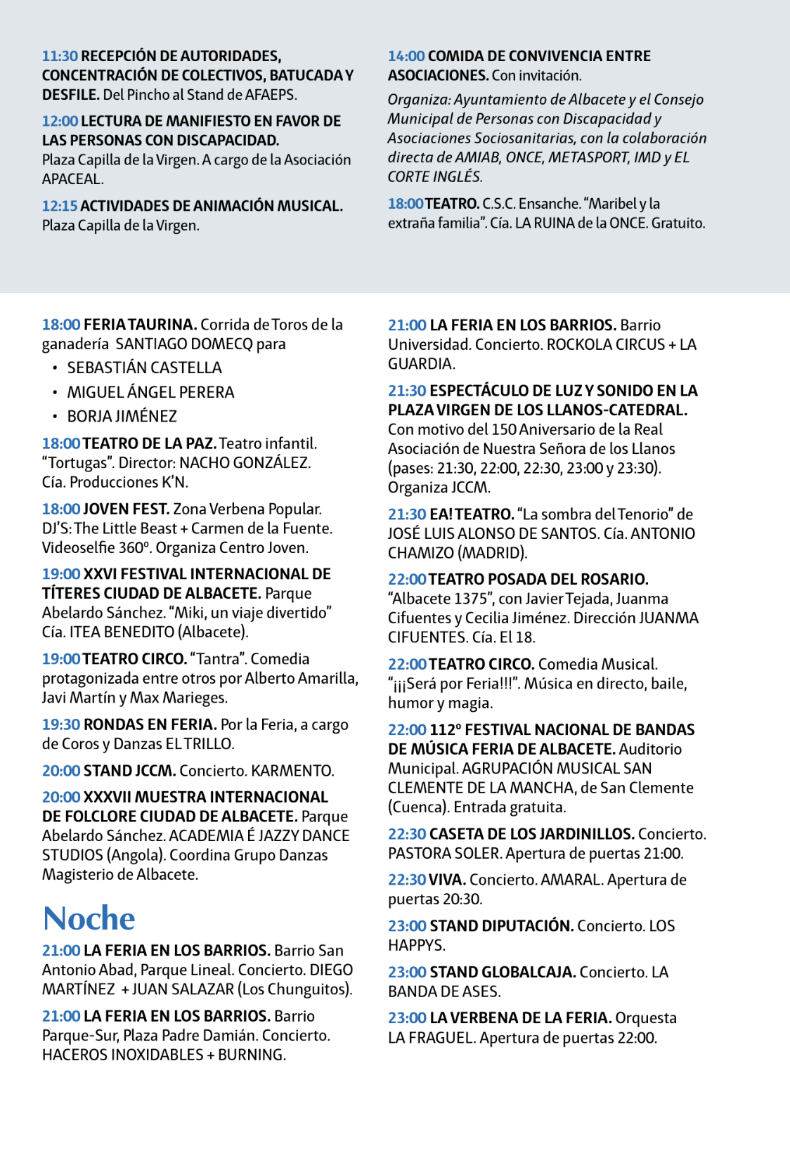 El Digital de Albacete les ofrece el programa oficial de la Feria de Albacete para el jueves, 11 de septiembre. El Digital de Albacete10 septiembre, 2025 - 20:47