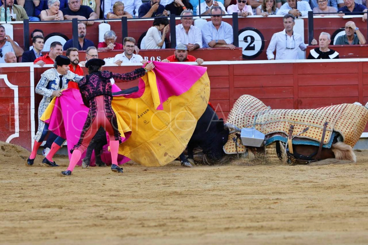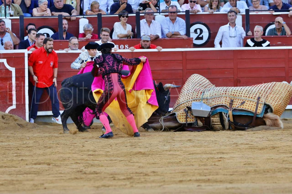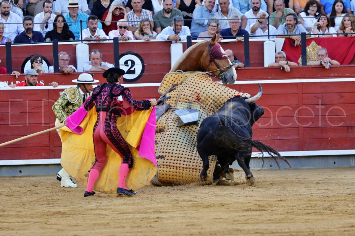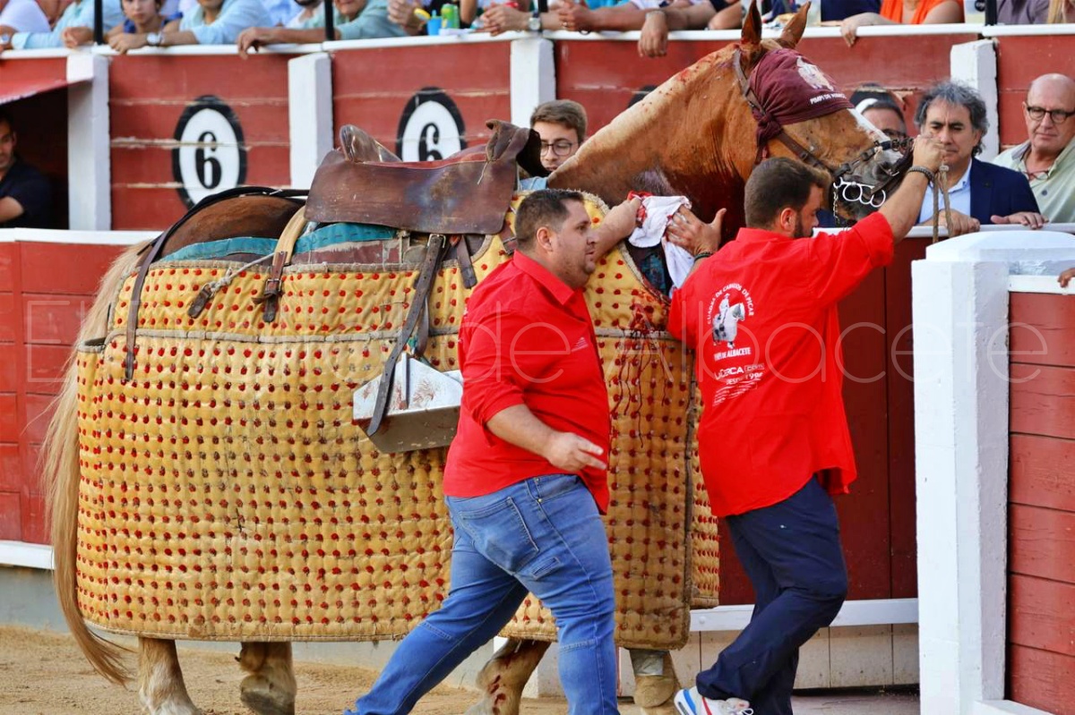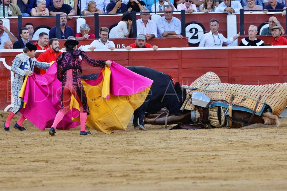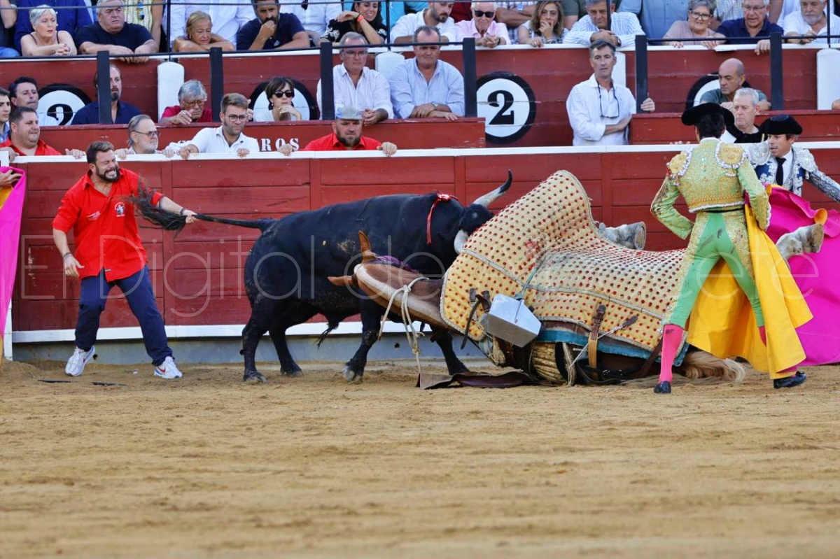 Tras entrar al caballo, ‘Acedía’ se ha encelado con la montura y después de tirar al suelo al equino hacía caso omiso a los capotes de los subalternos de Alejandro Talavante e incluso de Juan Ortega, que trataban de sacarlo al tercio, sin embargo, el astado ha seguido centrado en su particular lucha con el caballo de la cuadra de ‘El Pimpi’ hasta que al final acabó metiéndole el pitón por el cuello al equino.