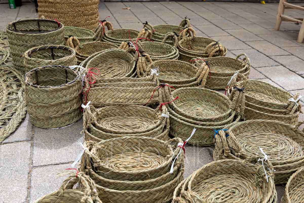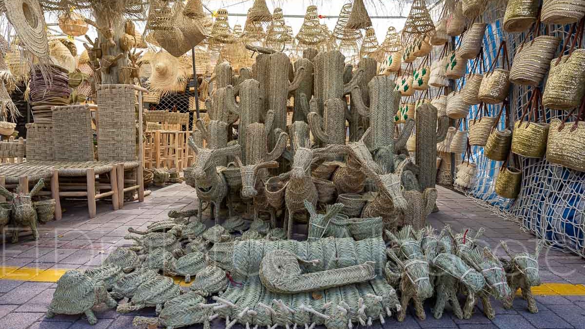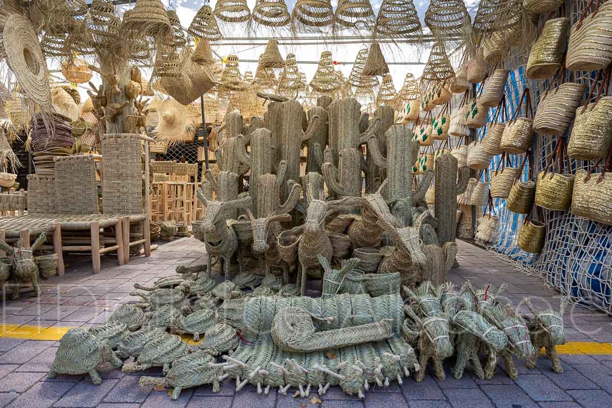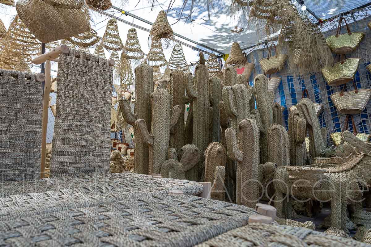 En este puesto de la Feria de Albacete hay una gran variedad de productos hechos con esparto. “Todo lo que te puedas imaginar, desde lámparas hasta sofás”, explica Bousta, que señala que “la cestería es lo que más se lleva la gente, antes se usaba para ir al campo, y ahora la gente la usa para ir a comprar y para uso diario”. Y es que en este puesto se pueden encontrar desde animales hasta cactus fabricados con este material único.